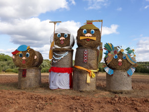 Фигуры в Каменецком районе. Фотографию прислал Виталий Прихач, на ней рядом с соломенной композицией его дети Павел и Надежда