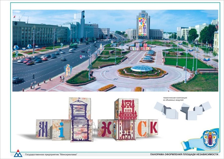 На здании педуниверситета на площади Независимости традиционно разместят панно, на этот раз — с башнями замчища и Привокзальной площади. Этот мотив будет повторяться и на других объектах, которые украсят к празднику, рассказывает директор «Минскрекламы» Сергей Хильман.