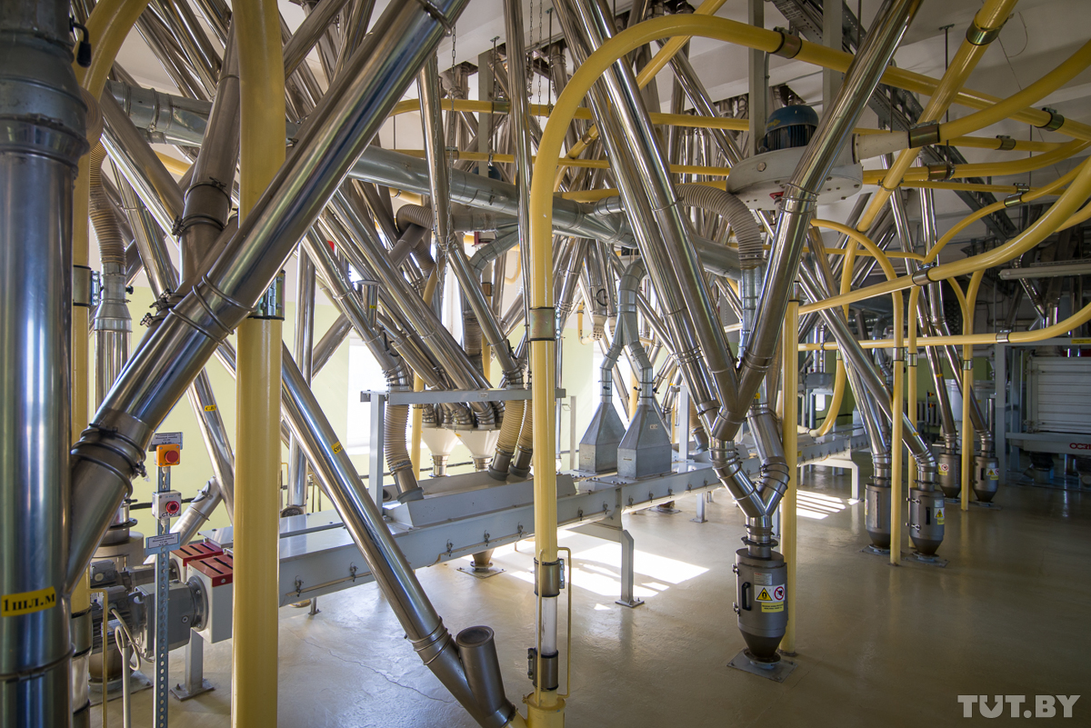 С помощью транспортного оборудования зерно поступает в сортовую мельницу, оснащенную современным итальянским оборудованием.