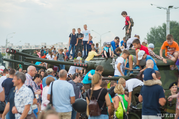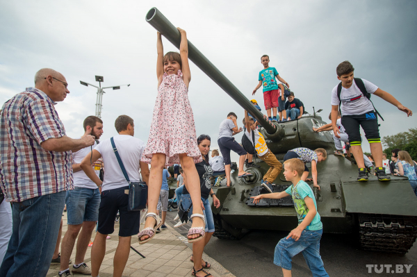 В ней представлены абсолютно все поколения белорусов. За самыми маленькими иногда присматривают даже бабушки, упорно стоящие рядом с играющими внуками: «Чтобы он на этом танке куда не уехал». А где же отцы?