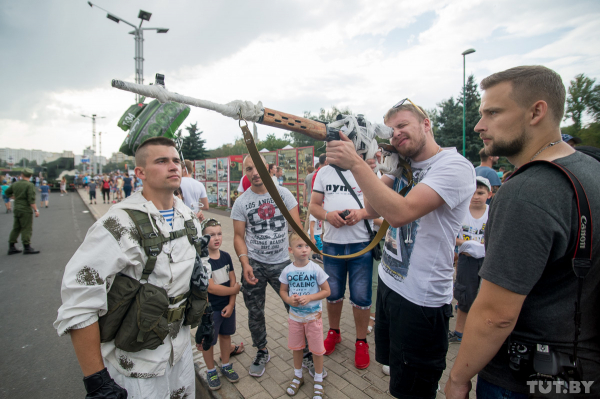 Белорусские военные не только показывали технику, но и раздавали подарки. Для детей была устроена викторина на знание танков. Победить хотелось всем, но самый большой шанс был у поклонников World of Tanks.