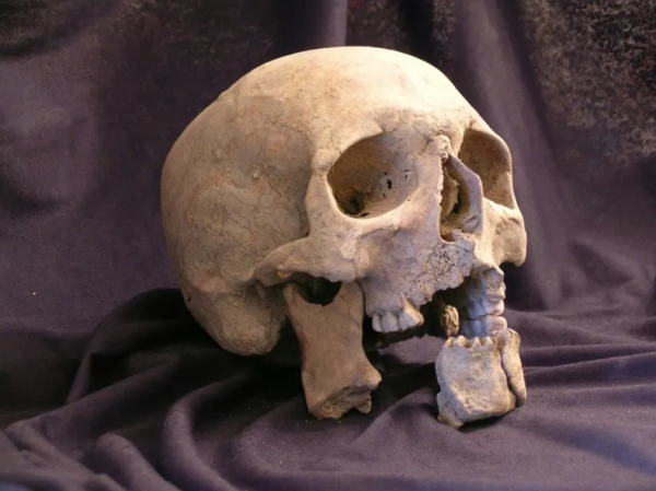 Череп находился в одном из двенадцати найденных захоронений, в которых были кости более чем 600 французских солдат войны 1812 года. Их опознали по кусочкам униформы, булавкам и другим знакам отличия. Исследователи предположили, что череп с рассеченной челюстью принадлежал мужчине в возрасте от 24 до 27 лет.