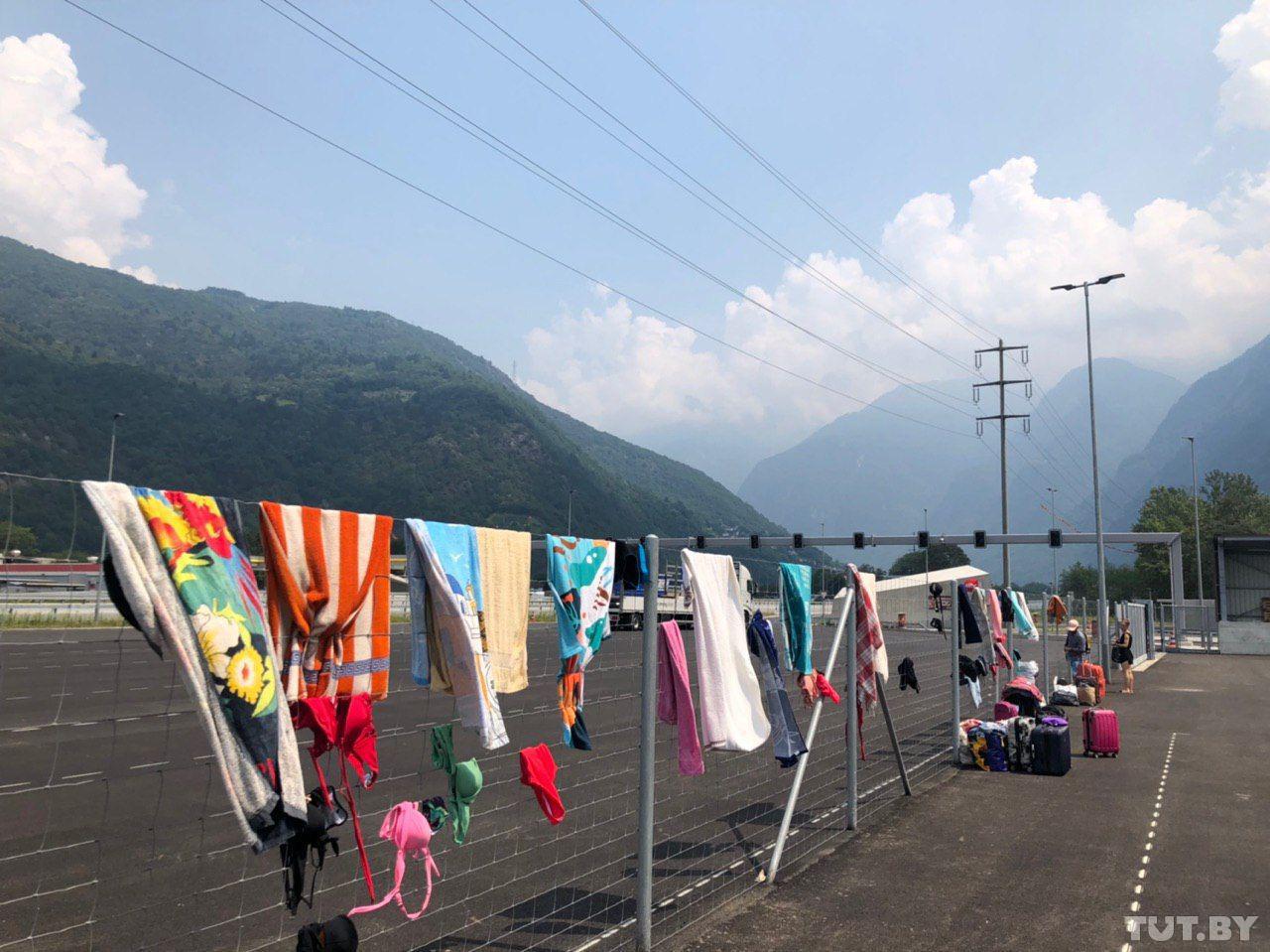 «Хорошо, что на заправке был душ. Плохо, что вещи пришлось сушить на заборе», — рассказал один из застрявших в Швейцарии туристов. Фото: TUT.BY