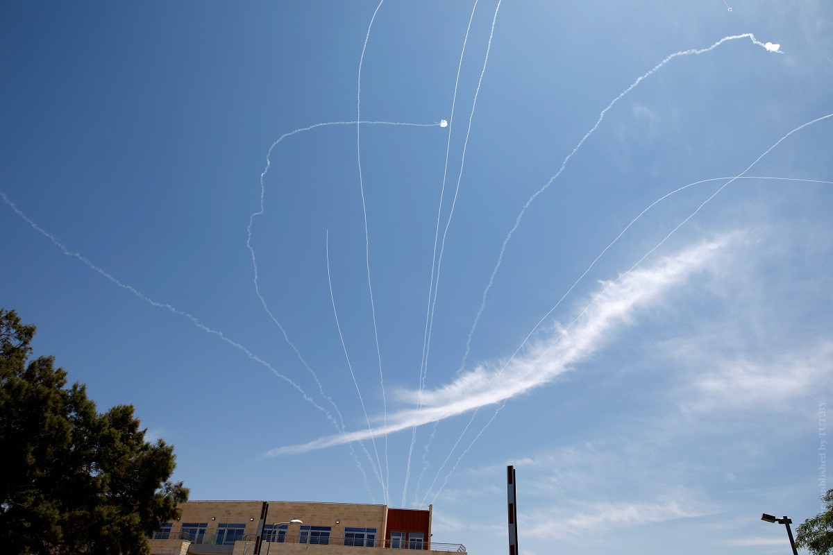 Следы от перехваченной израильским ПВО ракеты. 5 мая 2019 года. Фото: Reuters