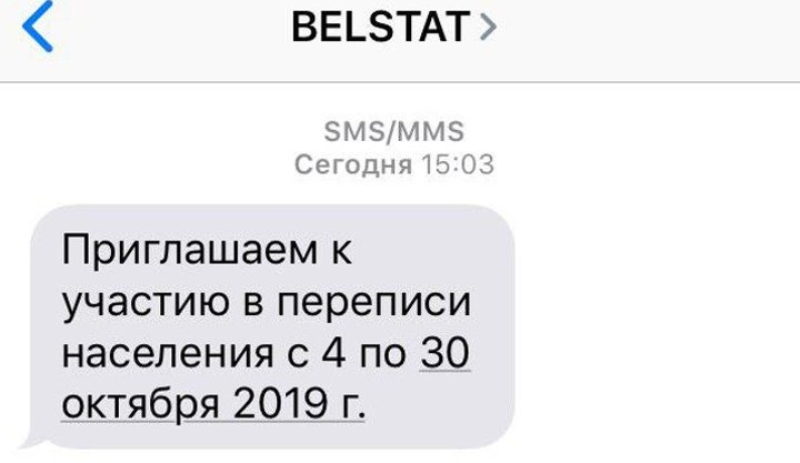 Читатели сообщают TUT.BY, что они стали получать СМС от Белстата. В сообщении людей приглашают принять участие в переписи населения. В течение 1−2 октября такие послания придут на мобильные всех жителей страны. Чуть позже всем, кто получил первое СМС, придет второе. В нем будет указан адрес интернет-переписи. Кликнув на него, человек сможет зайти на сайт по переписи.