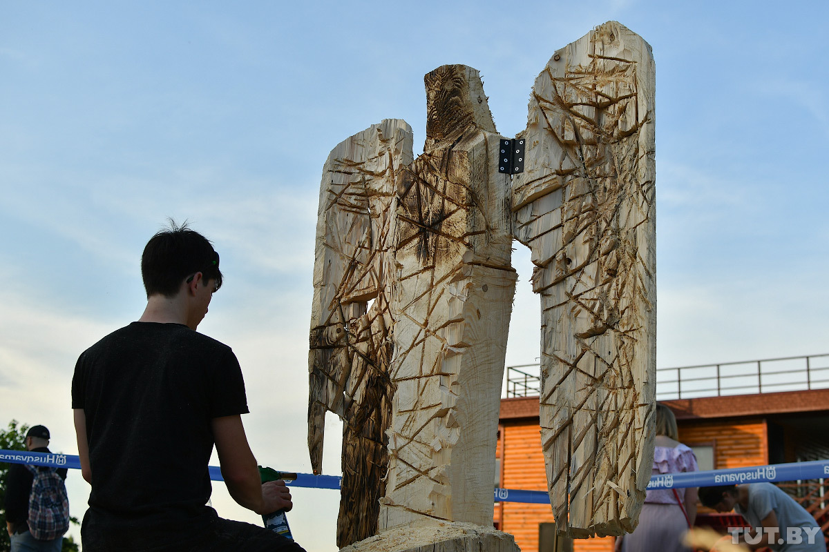 Брутальные мужчины, звуки бензопил и разлетающиеся в стороны щепки. Все это было на «Битве лесорубов», которая прошла вчера в минском парке «Дримлэнд». Как деревянные болванки превращаются в скульптуры, посмотрел TUT.BY.