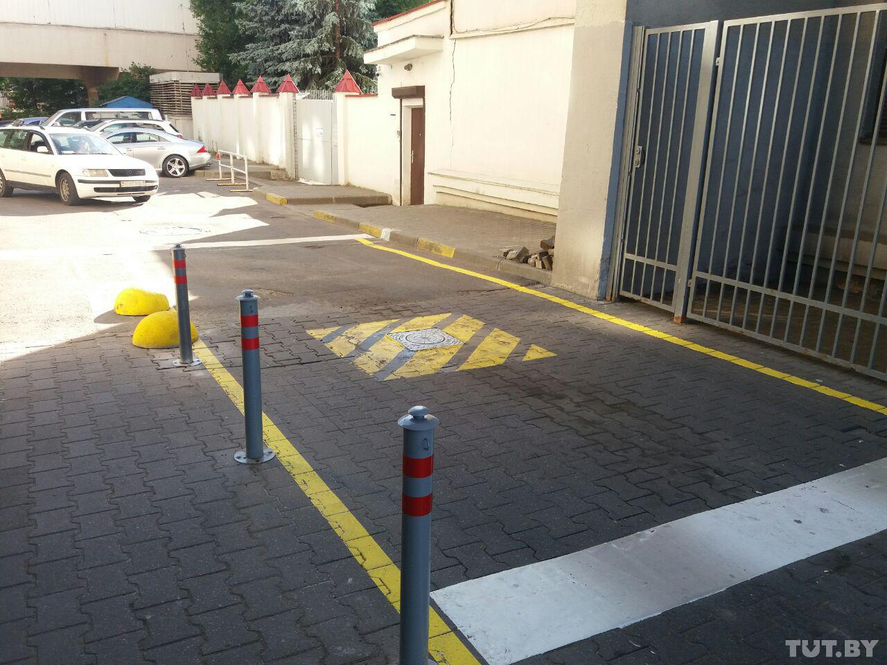 Боллард в опущенном положении на въезде со стороны улицы Энгельса. Фото: Майя Кохно, TUT.BY