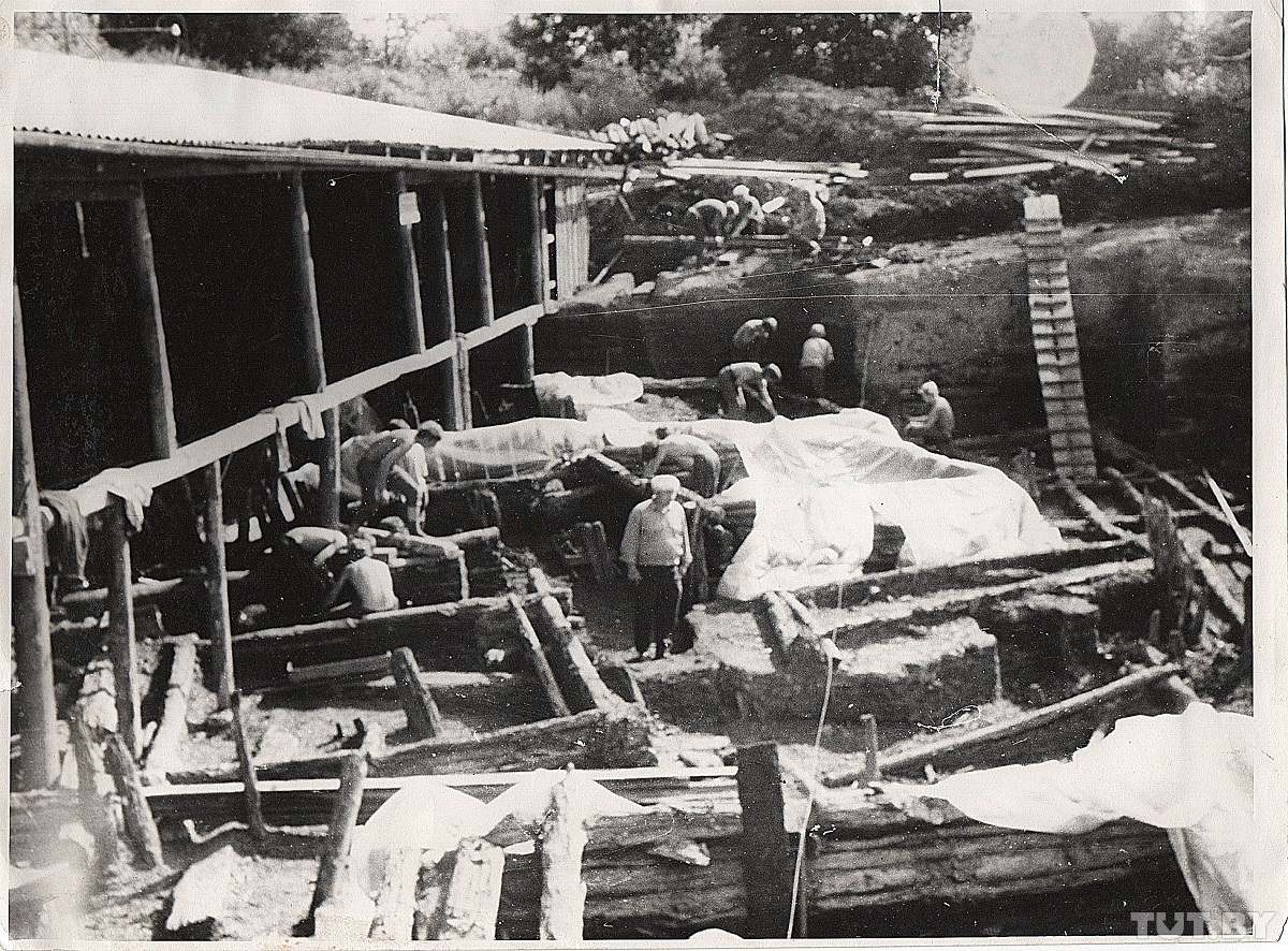 — Что методика требует? Ярус расчистил — зафиксировал чертежом, фотографиями. Но жизнь-то не кончилась на этом ярусе, жизнь была и в более ранний период, а чтобы его изучать, этот ярус нужно разобрать. А здесь постройка на 12 венцов. Руки не поднимались и язык не поворачивался сказать, чтобы ее разбирали. Постройку эту вычистили, вылизали, а я все никак не могу скомандовать ее разобрать. Тут к нам подошел секретарь Брестского обкома партии Сергей Шабашов. Я ему рассказал о своих терзаниях, а он говорит: «А что, если это все сохранить».
