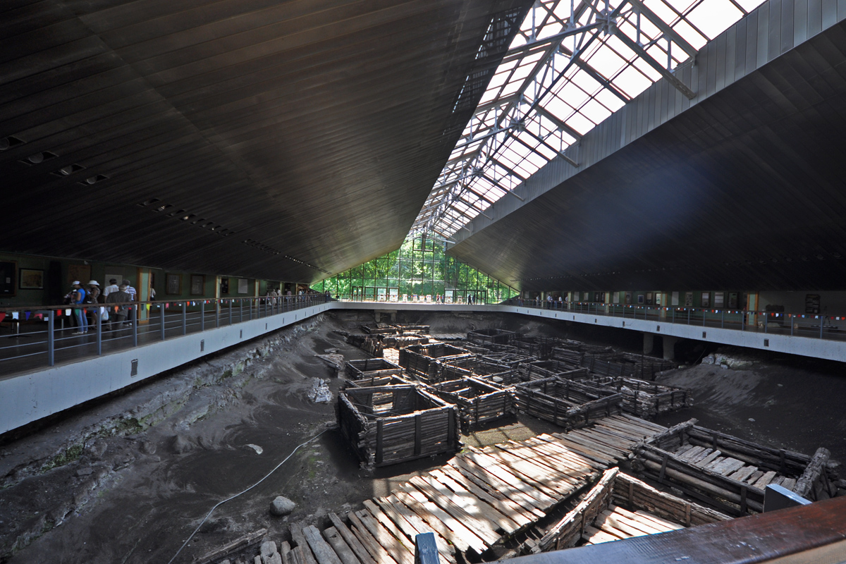 Еще одну ценную находку археологи откопали в 1970 году — постройку в 12 венцов бревен высотой с сохранившимися дверным проемом, остатками пола, печи и деталями кровли у стен. В древнерусской археологии — это небывалая редкость.
