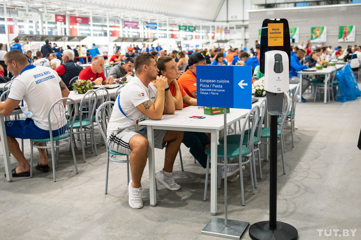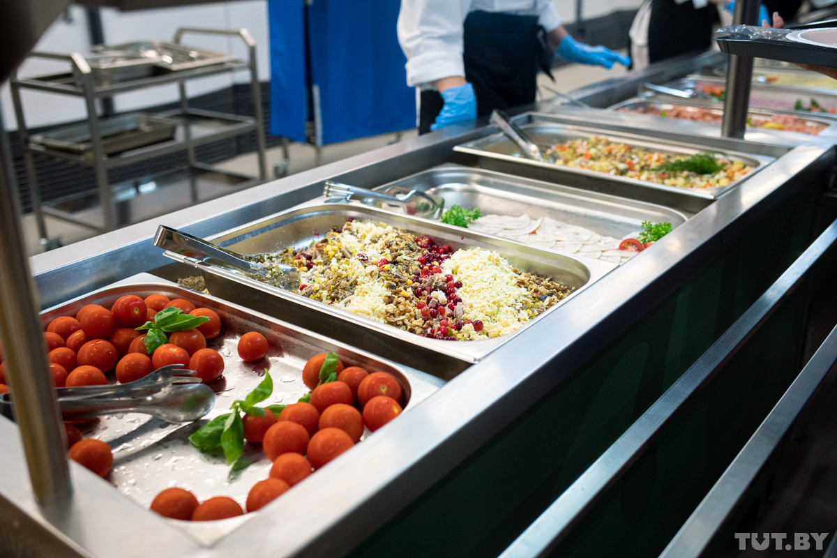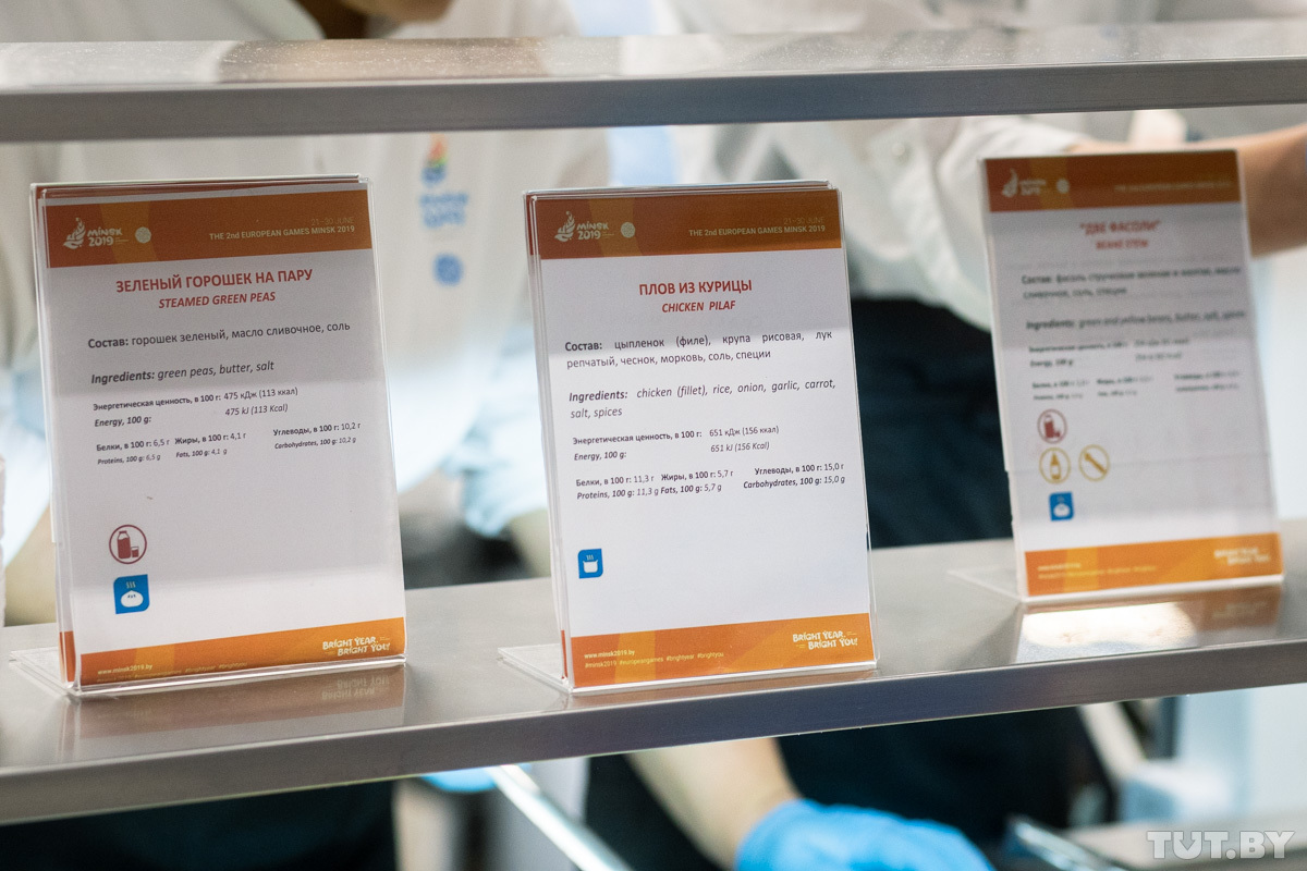 На выбор атлетов представлены блюда европейской, белорусской, азиатской и халяльной кухни. Отдельно есть линия гриль, пасты и пиццы.