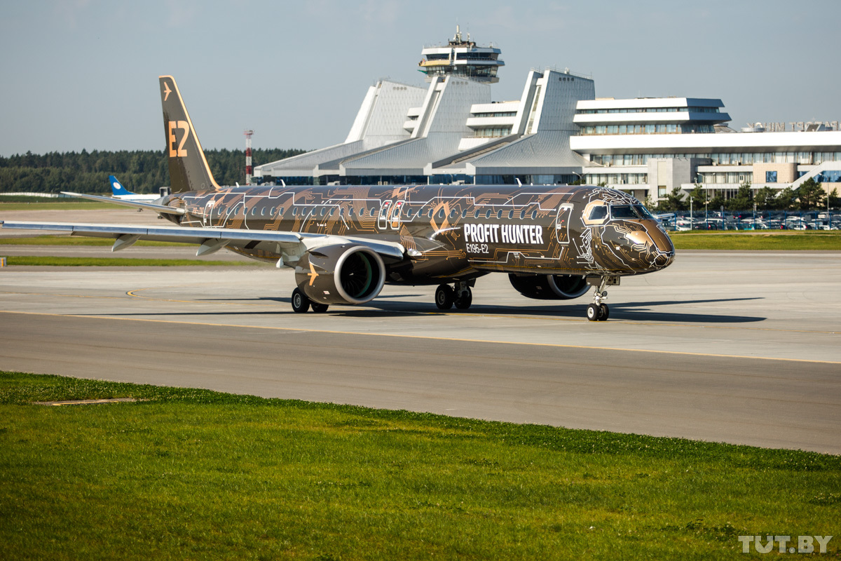Embraer 195-Е2 прилетел в Минск во время мирового демонстрационного турне. Новую модель уже показали в Китае, Японии, странах Азиатско-Тихоокеанского региона, благодаря экономичности его успели прозвать «Охотником за прибылью».