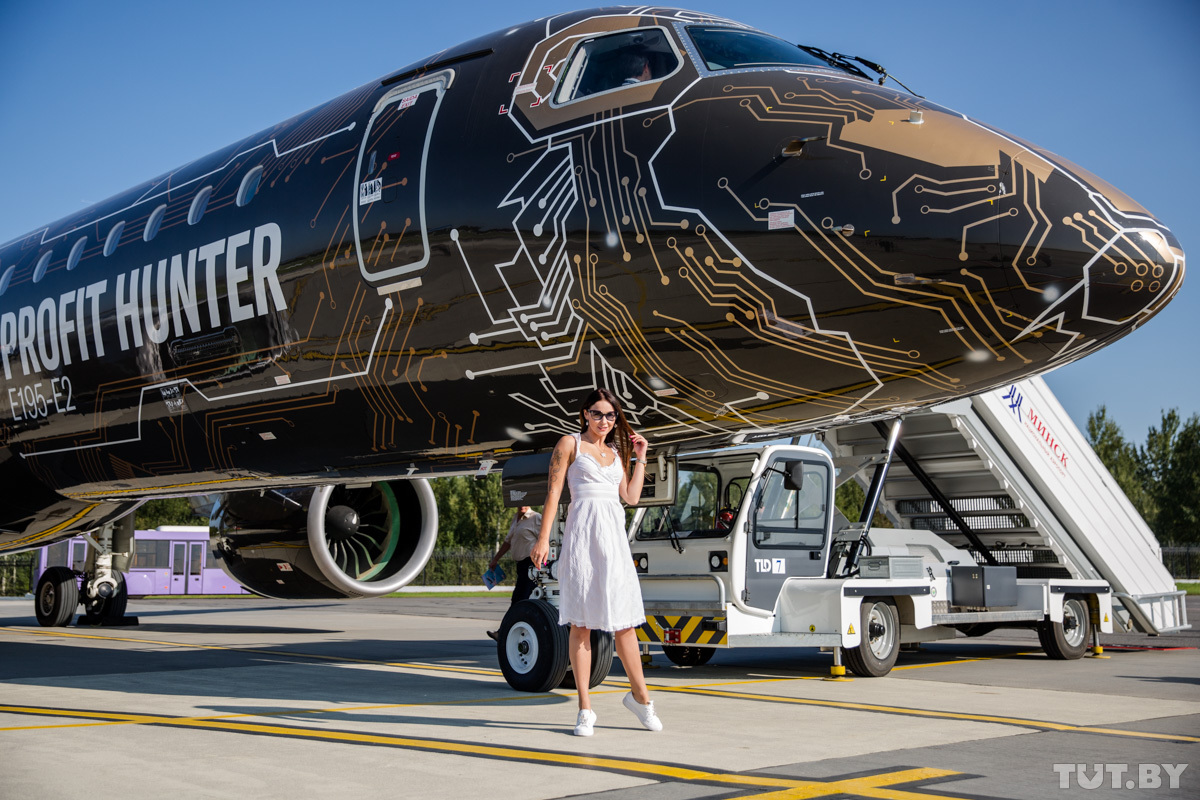 Пассажиры, которые сегодня вылетают из минского аэропорта, могли заметить необычный самолет — черная расцветка, в носовой части — золотистый «цифровой» лев. Это презентационная версия Embraer Е195 — Е2, производитель называет его самым тихим и экологичным самолетом в мире. В сентябре такие самолеты впервые полетят в Бразилии, в Европе они стартуют в этом году на Канарских островах, в следующем году ожидается, что новая модель поступит в Нидерланды. «Белавиа» уж семь лет работает с Embraer, но когда в белорусском авиапарке появится новинка, пока неизвестно.