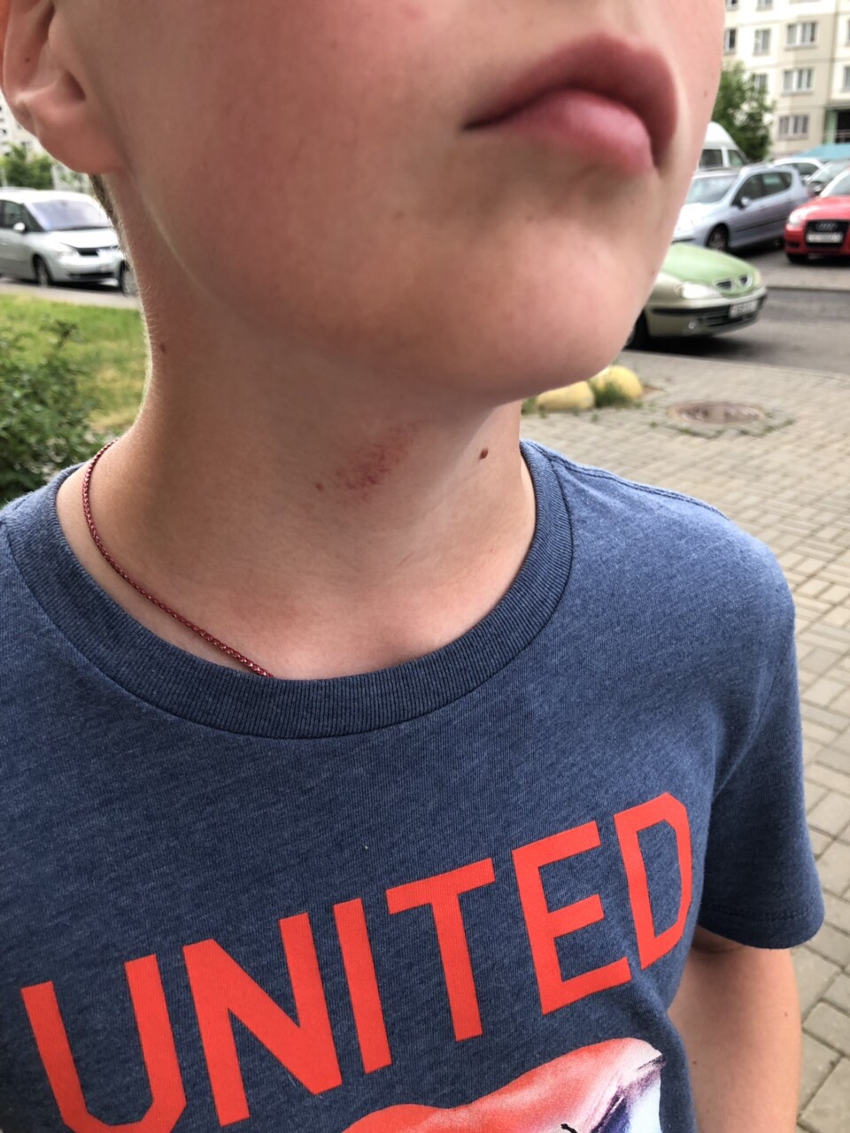Екатерина прислала в редакцию фото сына после инцидента на детской площадке. На шее — кровоподтек. Фото: из архива героини