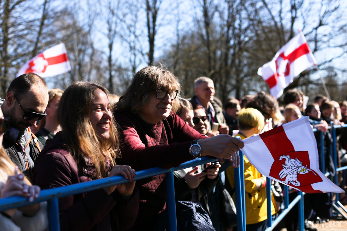 13.30. По данным организаторов, на мероприятие собралось от одной до трех тысяч человек. По оценке корреспондента TUT.BY, на площадке находится не более 1500 празднующих. У сцены стоит 250−300 слушателей, в основном молодежь. Люди рассредоточились по площадке, многие «застряли» в очередях на КПП.