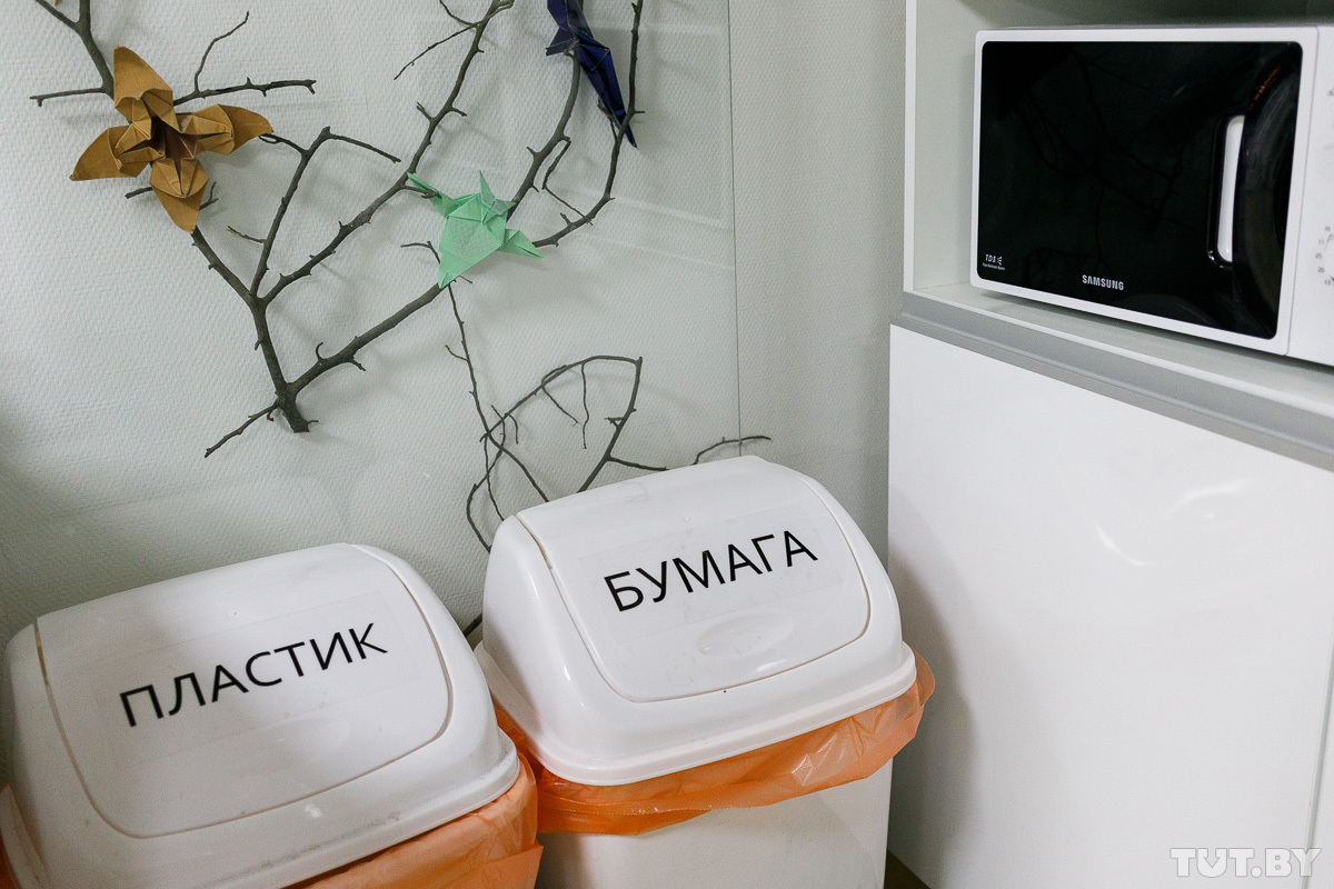 Предлагаем отважной троице оценить, дружит ли с экологией офис TUT.BY. Коллеги — любители пить воду сразу из четырех пластиковых стаканчиков, трепещите! (Шутка.)