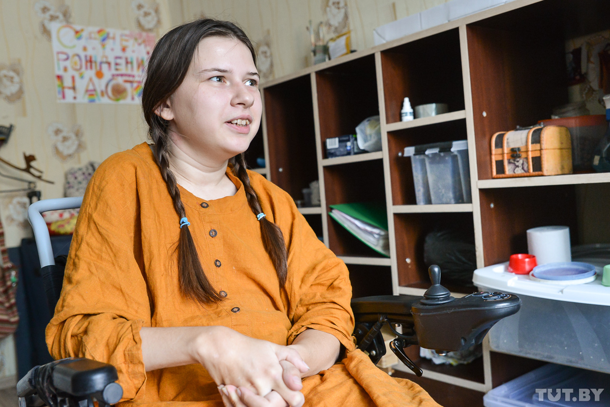Про Асю из Бобруйска мы уже раньше писали. Девушка стала инвалидом после прививки АКДС, которую ей сделали в 7 месяцев. На третий день после инъекции у нее поднялась температура, стали отказывать все органы. Теперь она прикована к инвалидному креслу. Девушка не может напрягать и расслаблять мышцы тела по желанию — так, как это делают здоровые люди. Исключение — левая рука: она здоровая.