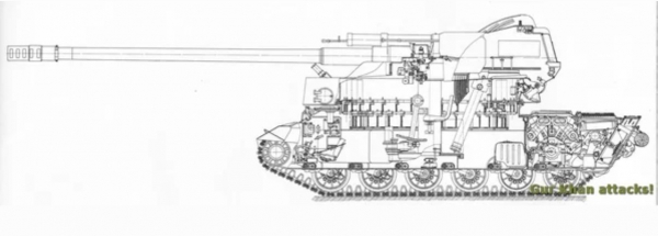 В распоряжении эксперта оказался чертеж самоходной пушки. Судя по нему, шасси «Изделия 327» имело более совершенную ходовую часть, заимствованную от танка Т-80.