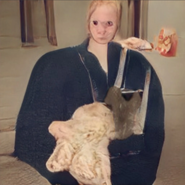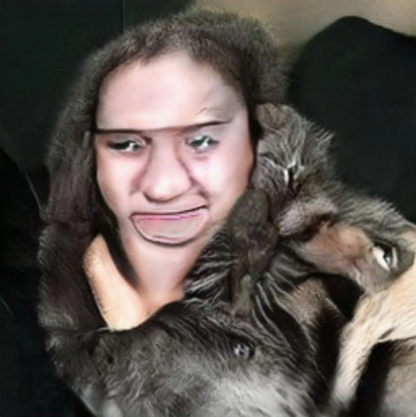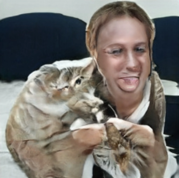 Отдельная категория — когда нейросеть пытается сгенерировать не просто фото кота, а кота и хозяина.