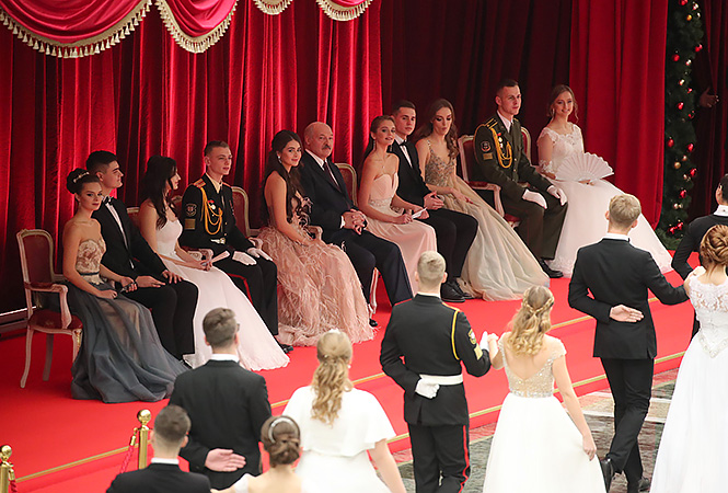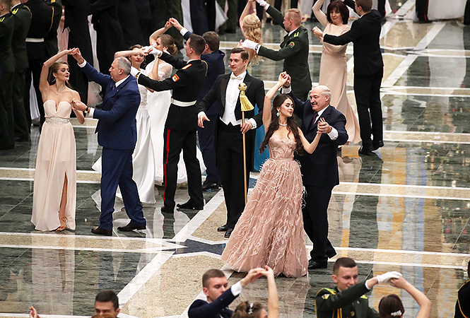 Президентский оркестр играл сочинения Моцарта и Штрауса, распорядителем бала был Геннадий Давыдько, танцмейстер помогал не сбиться, а танцевали все: приглашенные молодые люди, президент страны, премьер-министр Сергей Румас, его зам Игорь Петришенко, глава Админинистрации президента Наталья Кочанова и пресс-секретарь главы государства Наталья Эйсмонт.