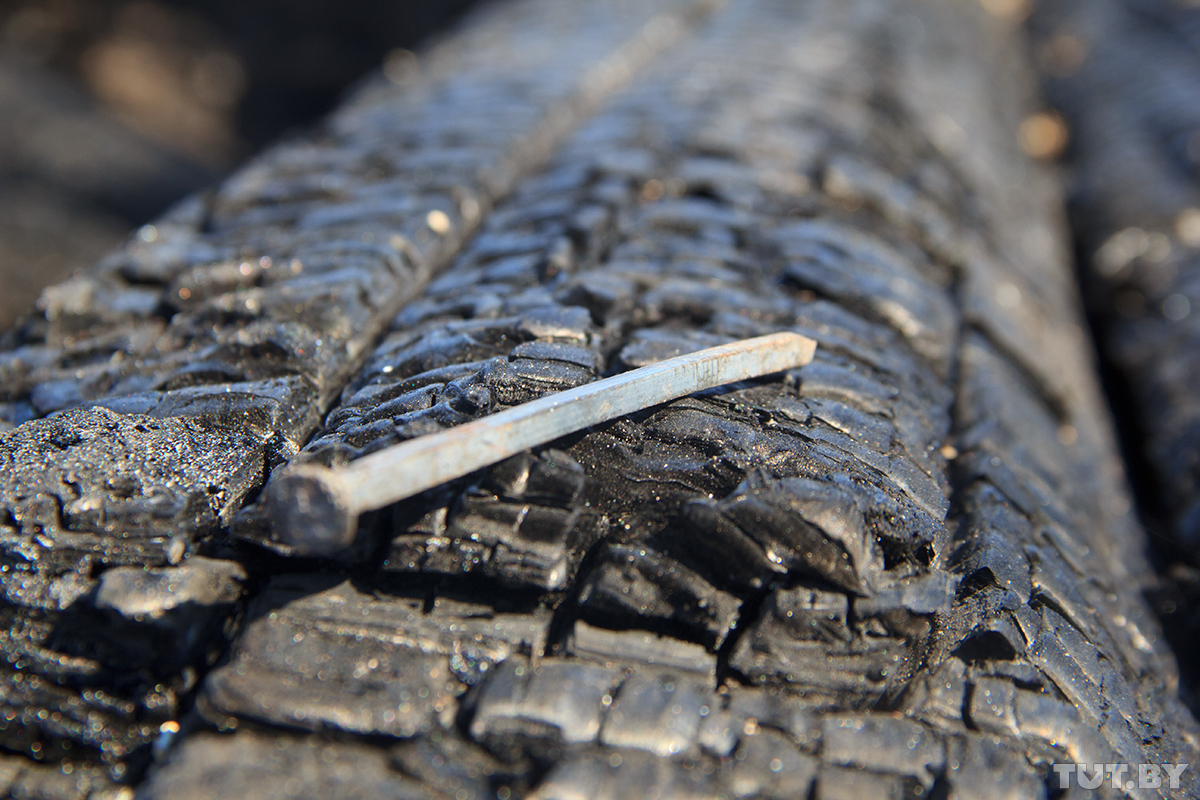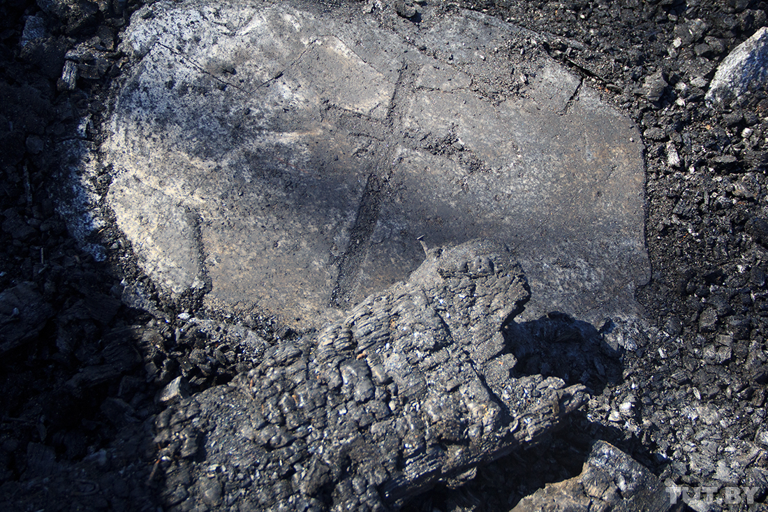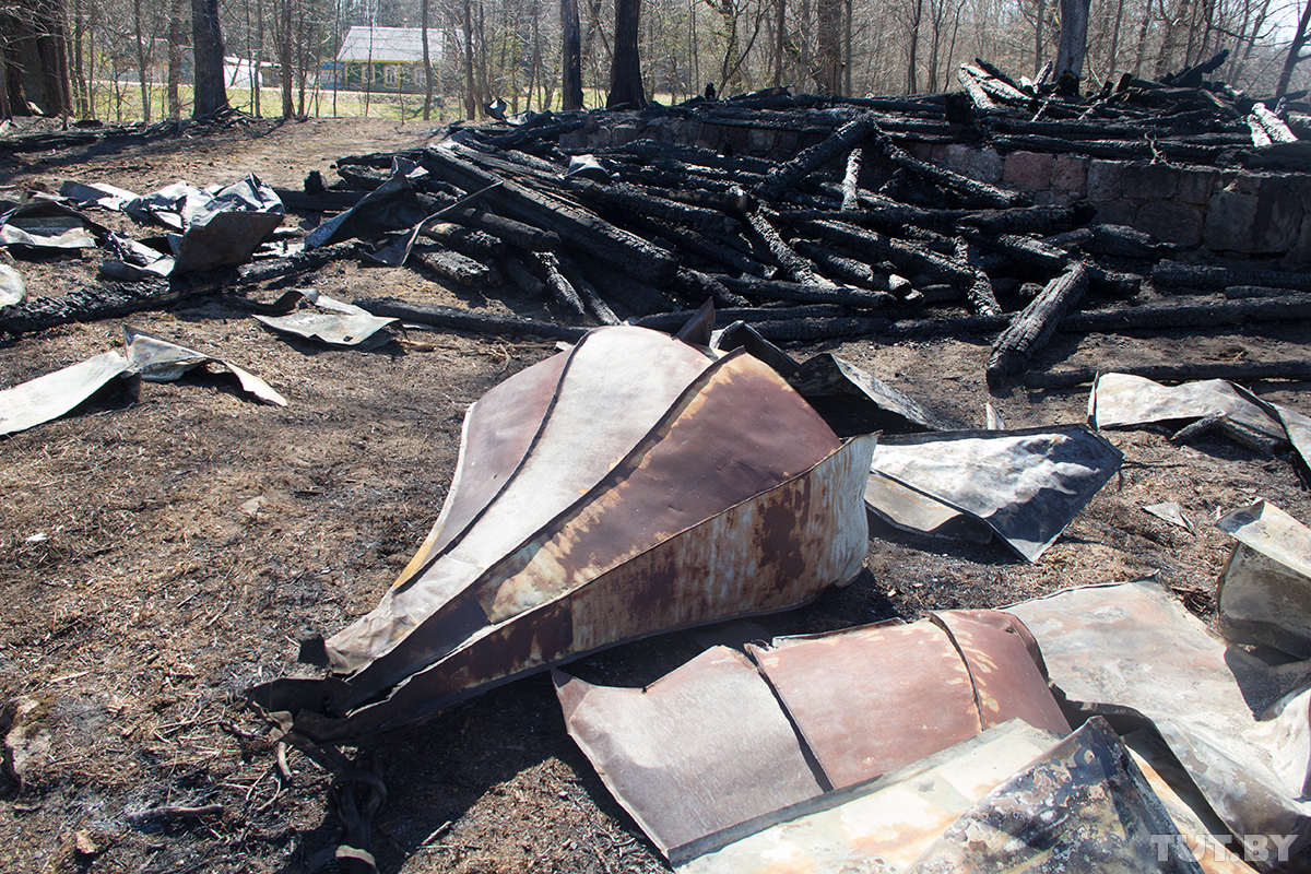 Сегодня на месте некогда красивого костела — одни головешки, пепел, черный от сажи старый фундамент и старинные гвозди — «квадратной» формы. На земле — развалившийся на части купол.