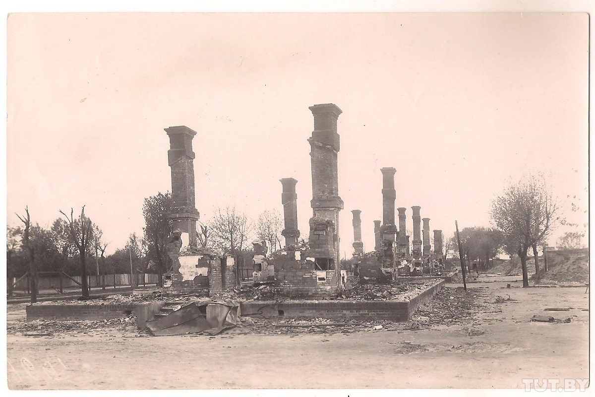 На черно-белой карточке — широкая улица. Посреди нее устремились в небо двенадцать печных труб. Эти столпы, которые некогда были окружены деревянными стенами жилых домов, испачканы сажей от пожара. Из-под земли выглядывают ровные прямоугольники фундамента. Слева и справа от них проходят грунтовые дороги. Когда-то по ним ездили извозчики и конные экипажи, гуляли статные горожане в двубортных пальто под руку с дамами в длинных платьях. Они наверняка жили на другой улице в кирпичных домах. Их пламя не уничтожило, но прожгло до костей. Наступающая армия кайзеровской Германии шла захватывать не только крепость, но и город Брест-Литовск, а пришла на пепелище. Изуродованные здания смотрели в объектив немецкого фотографа, зияя бездной дверных проемов и оголенных чердаков.