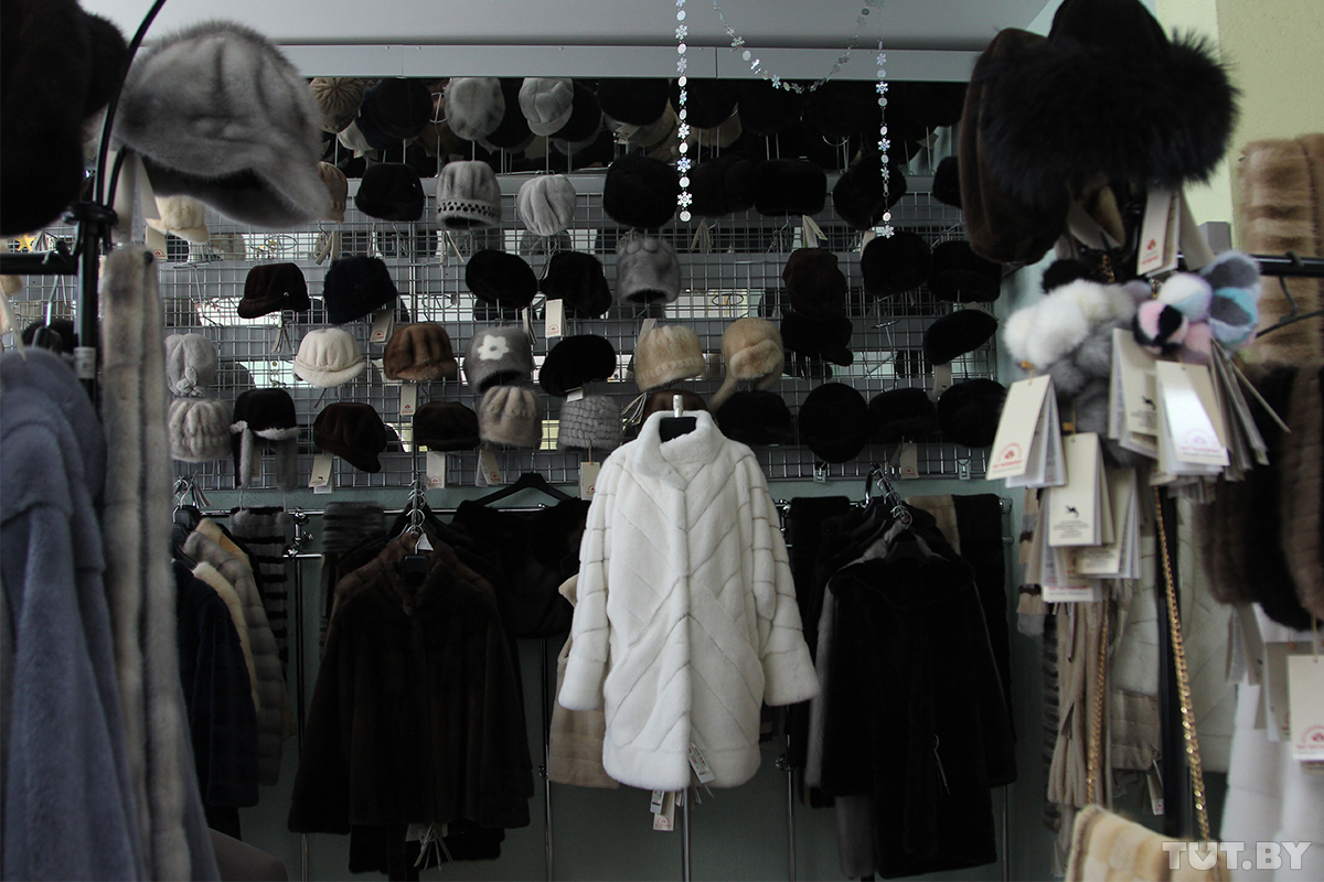 Продукцию предприятия можно найти в столичных и областных торговых центрах. Есть и свой фирменный магазин на главной площади Остромечево. Это, к слову, также востребованная точка у туристов, которые заскакивают в агрогородок по дороге из Бреста в пущу и обратно. Ассортимент в меховом сельмаге большой: пальто, полупальто, жилетки, накидки, палантины, шапки, брелоки. Средняя цена норковой шубки отечественного производства — около 4 тысяч рублей.
