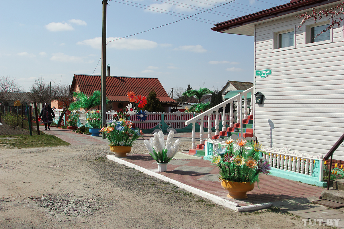 В доме возле фельдшерско-акушерского пункта живет Нина Ивановна. Ее дворик легко узнать по инсталляциям из вторсырья, которые установлены по обе стороны забора. На участке стараниями хозяйки «выросли» высокие пальмы из пивных двухлитрашек, под которыми притаились пластиковые ромашки. В «деревне будущего» Нине Ивановне хотелось бы видеть побольше детских площадок: