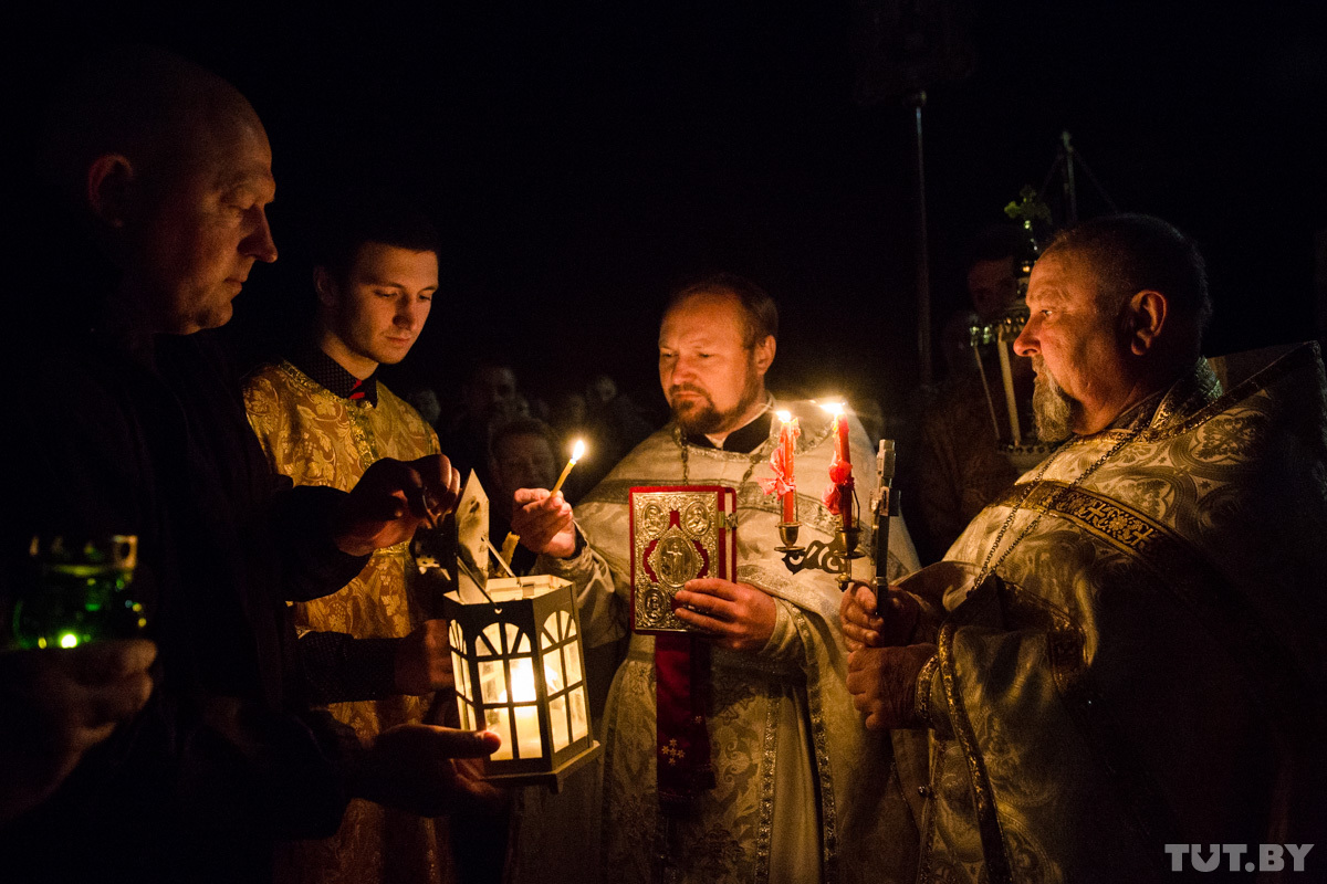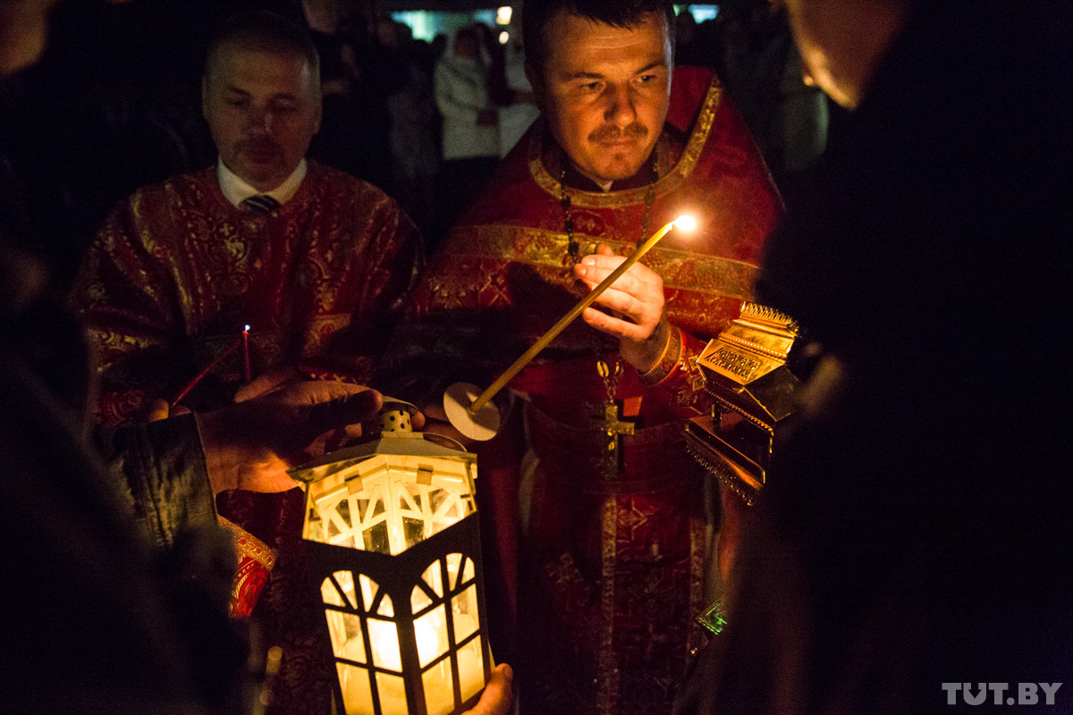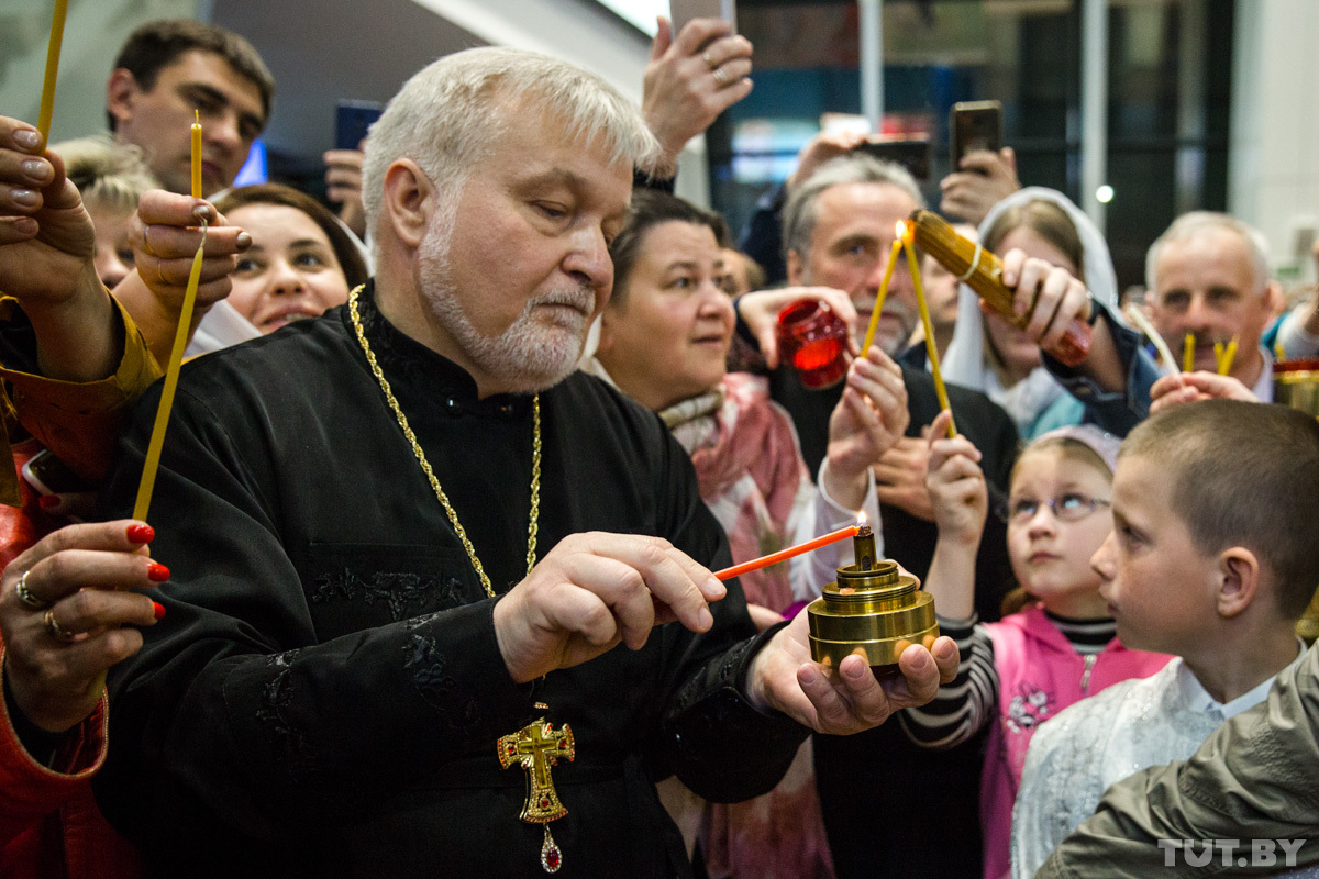 Из Кореличей специально за огнем в Минск приехали друзья Олег, Андрей и Александр. Прихожане повезут святыню в церкви Новогрудской епархии. Еще не успеет взойти солнце, а каждый житель этого края сможет принести частичку огня в свой дом. А с ним — и светлый праздник в семью.
