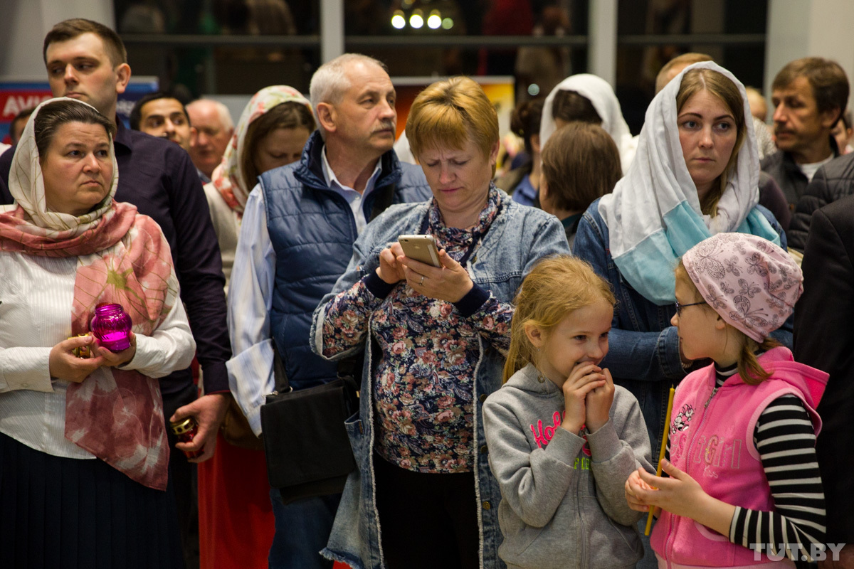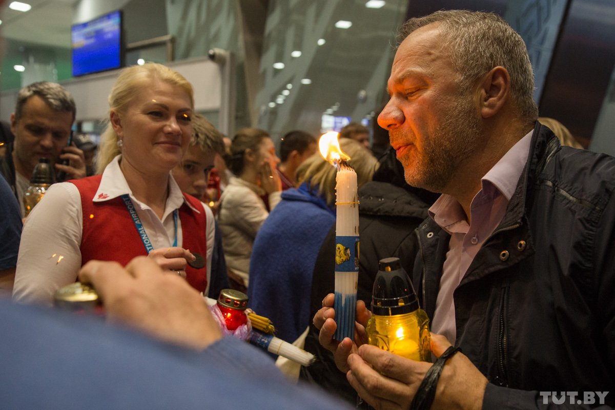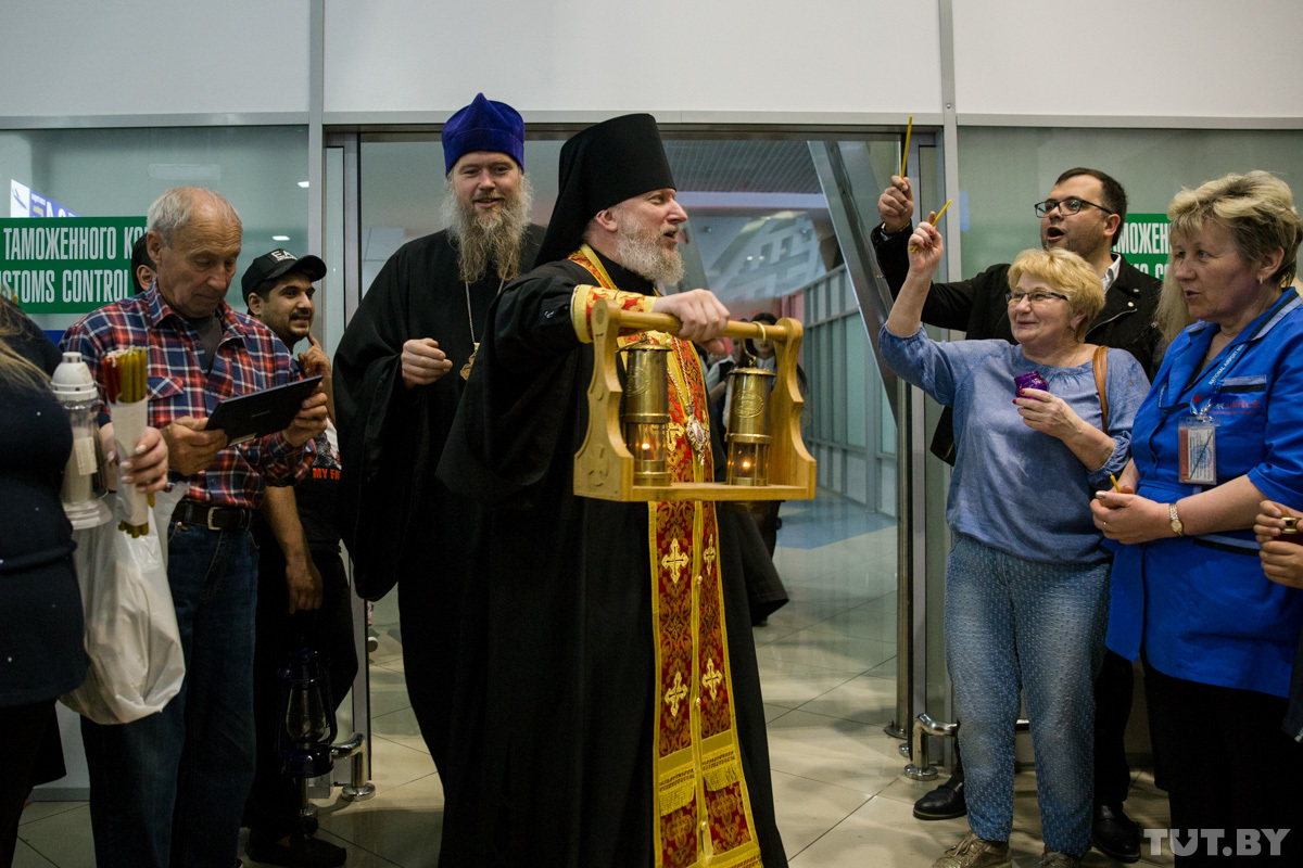 К девяти вечера в зоне прилета Национального аэропорта стали собираться верующие. Из Иерусалима до Минска более 3500 километров пути. Спецрейс ожидали ближе к половине десятого вечера, но самолет задерживается. Никто не злится и не тревожится. Вокруг ощущение счастья. Люди держат в руках свечи, обнимаются, встречая знакомых. Каждый приехал сюда, чтобы взять с собой частичку Благодатного огня
