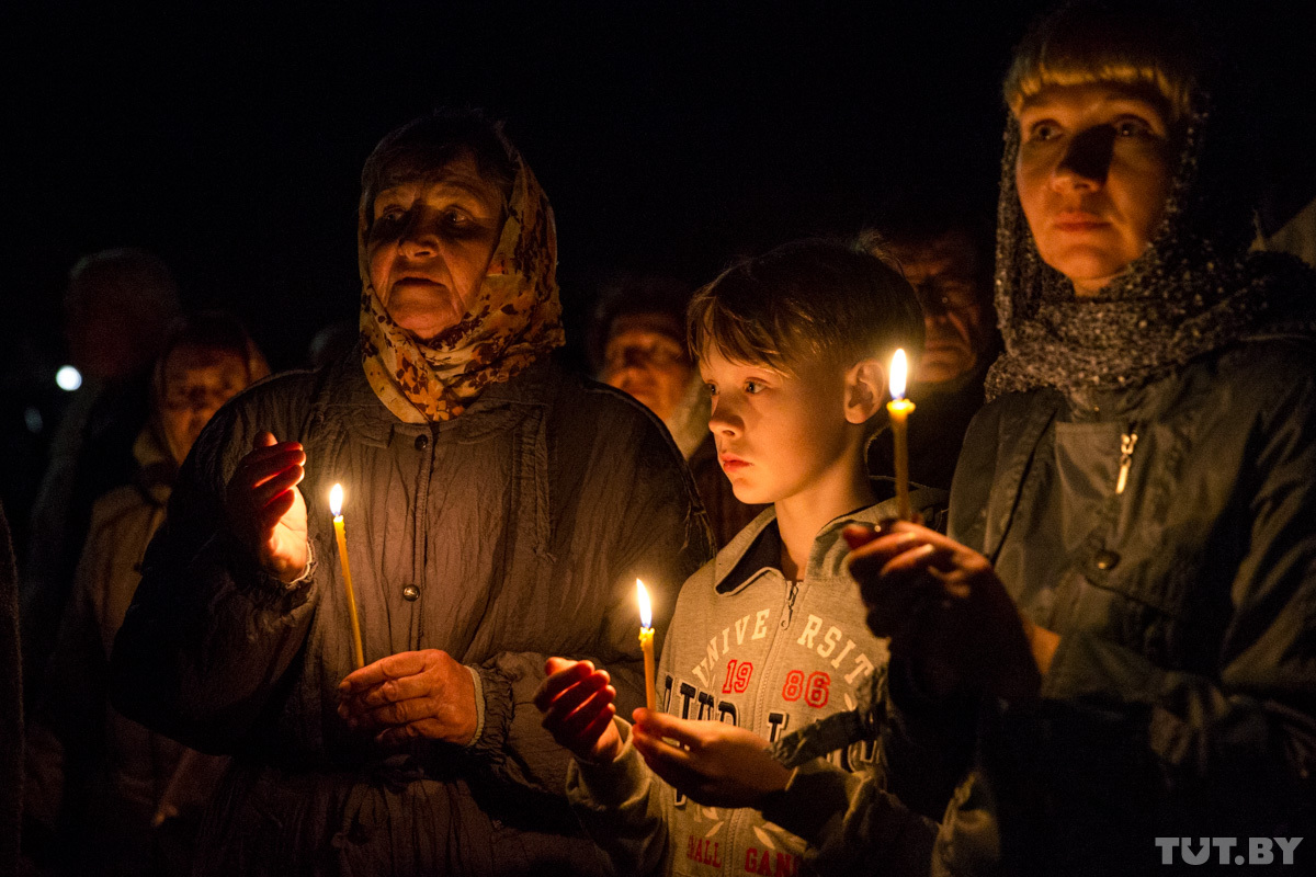 И вот он — Новогрудок. Вместе с верующими Благодатный огонь встречает благочинный Новогрудского церковного округа протоиерей Анатолий Герасимук. «Христос воскресе!» — приветствует он Лилию и других прихожан. «Воистину воскрес!» — в один голос отвечают ему верующие