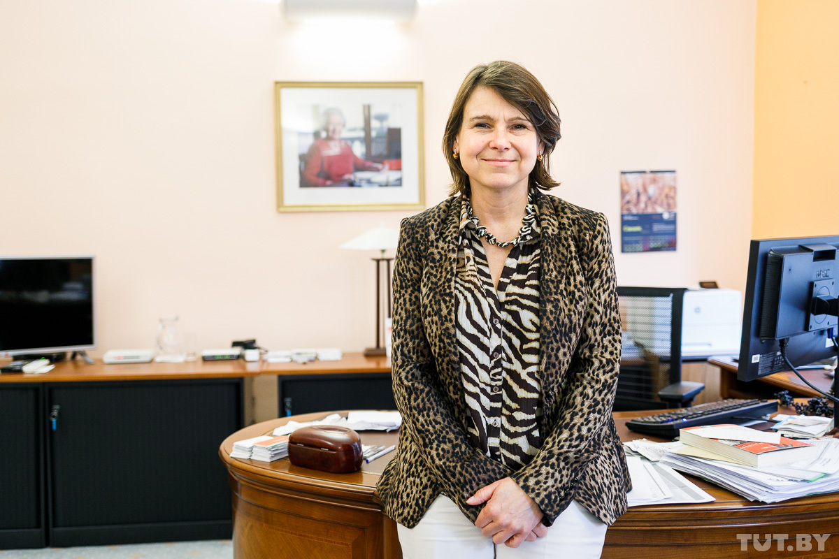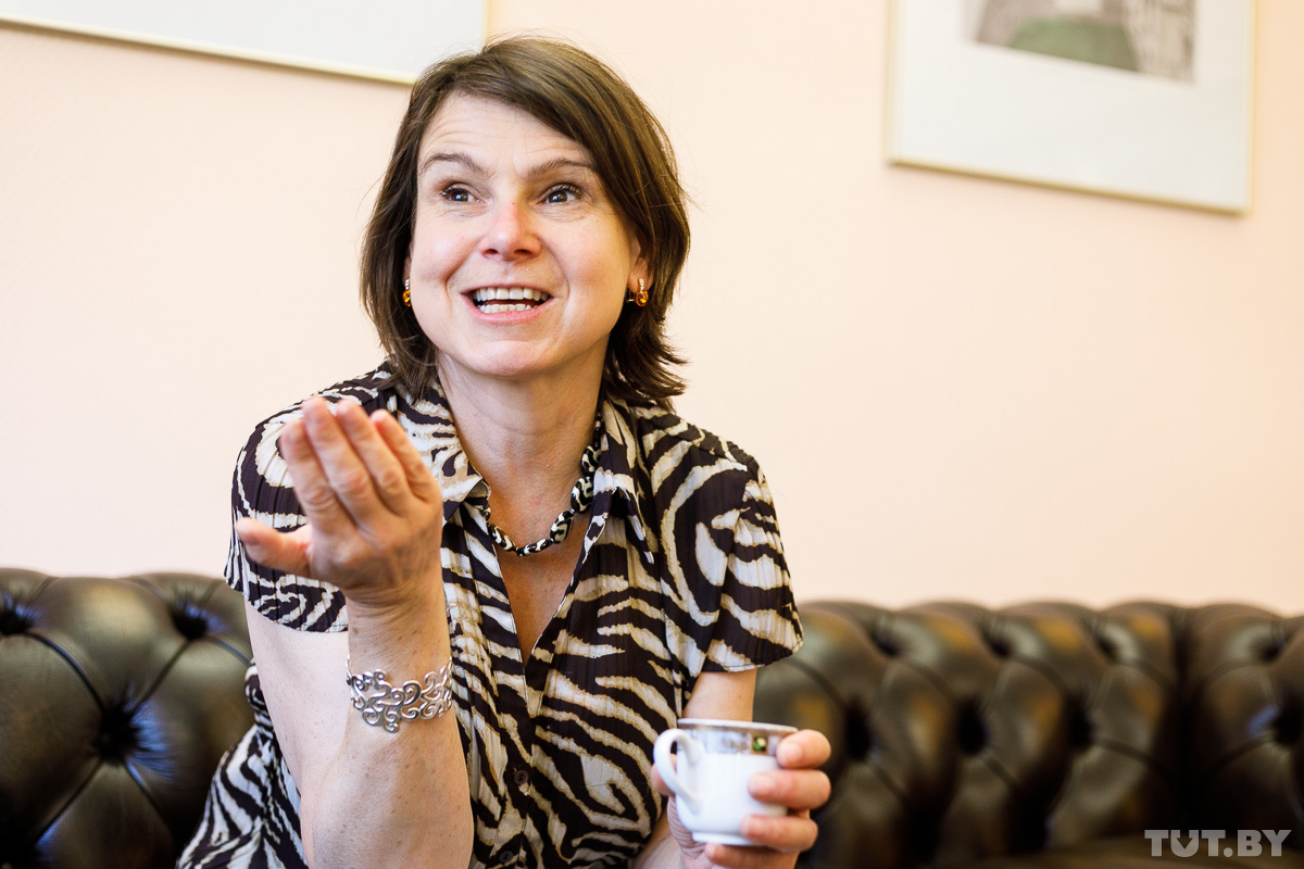 В конце августа из Беларуси уезжает один из самых ярких иностранных дипломатов в нашей стране — посол Великобритании Фионна Гибб. Незадолго до отъезда по байнету разошлась ее прощальная речь, произнесенная на приеме, — в ней посол очень точно, с характерным британским юмором подметила национальные черты белорусов. Перед ее отъездом TUT.BY поговорил с Фионной Гибб о белорусах, которых, кстати, посол считает слишком «сфокусированными на себе».
