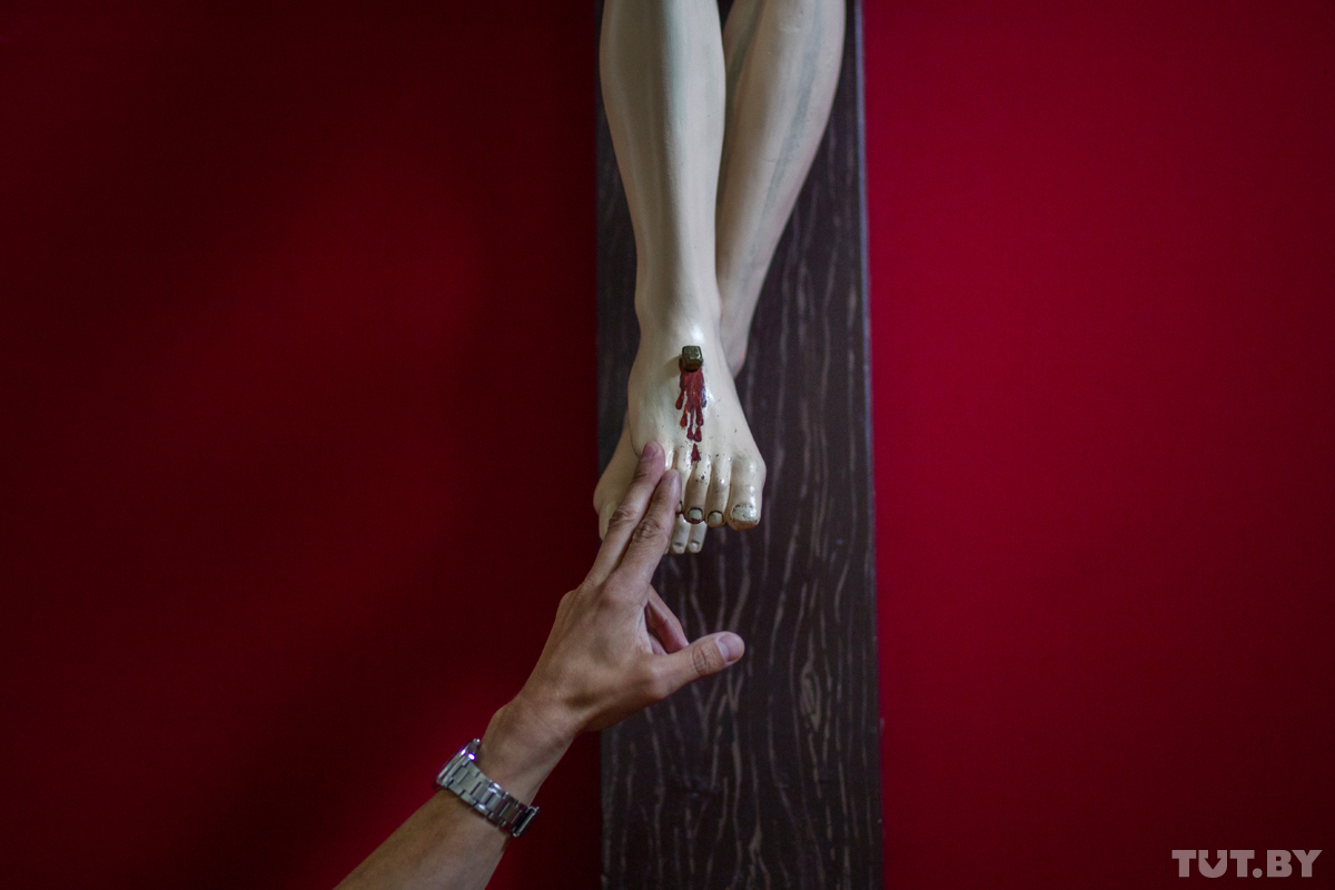 — Таких скульптур в Беларуси больше нет. А все как вышло… Полтора года назад ко мне стали обращаться молодые семьи, у которых нет детей. Я спрашиваю у них: что мне сделать, как мне вам помочь? Я могу за вас молиться, а в остальном вы должны сами этот вопрос с Богом решать. Спустя какое-то время ко мне приходит бомж. Он ждет меня шесть часов, чтобы… обмануть. Не очень интересная история. Но во время нашего разговора он говорит про Матерь Божью беременную. А я о таком первый раз слышу. Но стал искать в интернете, нашел совсем немного информации. В какой-то момент появляются люди, которые вытачивают скульптуру. Мы освятили ее на фесте в городе Пшемысел, куда когда-то ездила одна из наших прихожанок с просьбой о помощи нашему храму. Привезли сюда, поставили и сделали открытки со специальной молитвой. И недавно мне рассказывают, что у одной из местных жительниц УЗИ показало, что родится ребенок с синдромом Дауна. Она рассказала об этом своей учительнице. Та говорит, что не знает, чем помочь, и, наверное, остается только молиться. И тут из книги выпадает та самая открытка! В феврале женщина позвонила мне и сказала, что родился совершенно здоровый ребенок. Мы считаем, что наша Божья Матерь беременная сотворила свое первое чудо. Сейчас раз в месяц в храме проходят специальные молитвы за семьи, у которых нет детей.