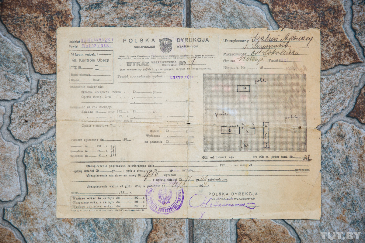 Документы на дом и хозпостройки семьи Шакун в 1924 году на польском языке. По ним понятно, что это место относилось к Воложинскому повету и это уже была территория Польши