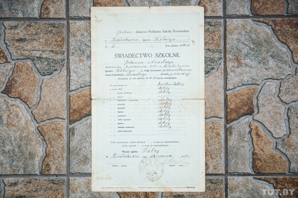 Учились они в польской школе: папа окончил три класса, мама — четыре. До сих пор сохранились документы об окончании каждого из классов школы.