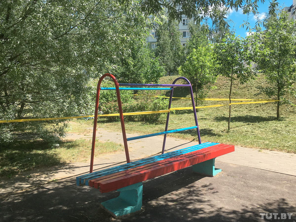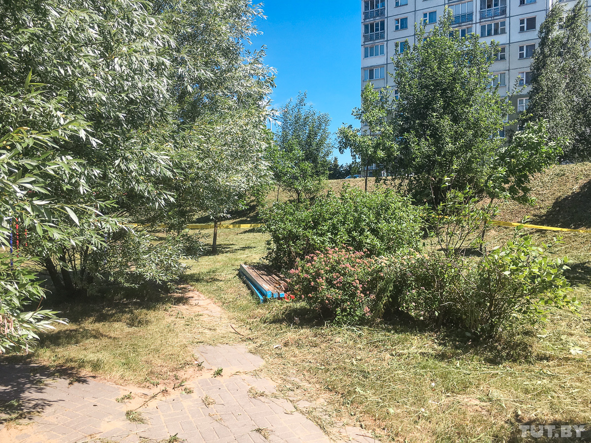 Возле небольшой детской площадки у дома № 27 на Мазурова (микрорайон Сухарево) сегодня растянута лента «Милиция, проход запрещен». За ней, возле кустов, что-то похожее на старую деревянную скамейку. Судя во всему, тут и случилась трагедия.