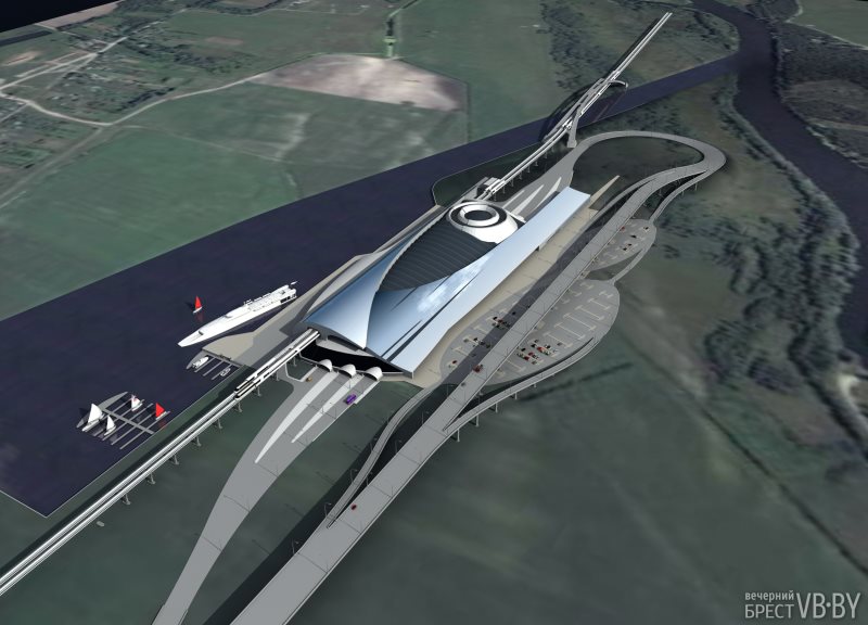 Но тема нашла продолжение в дипломной работе Павла Коняева. В 2007 году этот дипломный проект выставлялся на международном конкурсе архитектурных проектов во Флоренции (Италия). Было много откликов и просьб от европейских архитекторов использовать эту технологию и сам архитектурный прием, саму идею комплексного вокзала (ХАБа) на границе ЕС и ЕАЭС под Брестом. Авторы проекта предлагают разместить его в районе деревни Новосады, в полутора километрах на север от М1.