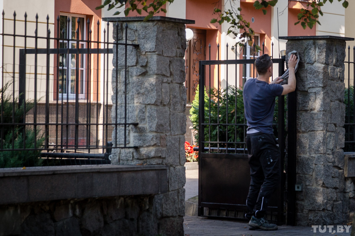 В пятницу днем молодой человек мыл забор Апостольского консульства.