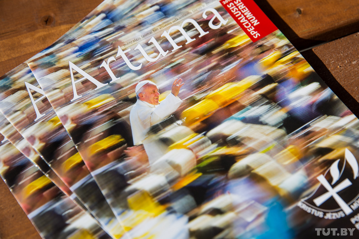 Возле нее листовки с изображением папы Франциска на литовском и польском языках. — В эти дни приехало много поляков, есть люди из Беларуси, Америки, других стран. Очень приятно, что они сейчас в Литве, — отмечает женщина.