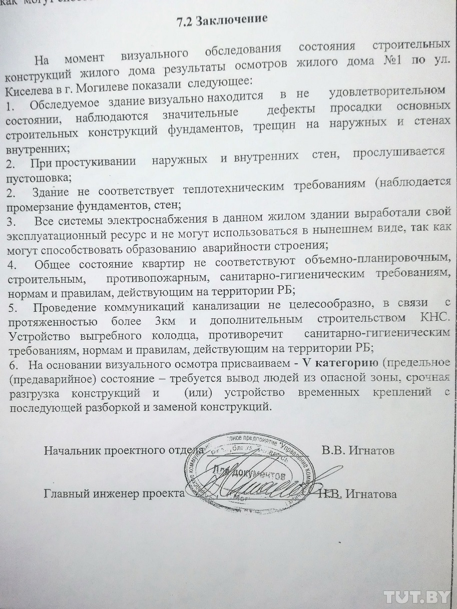 Есть заключения экспертиз об аварийности дома 4-й и 5-й степени — и резюме, что жить в нем опасно, проводить капремонт нецелесообразно, а людей нужно срочно выселять. И есть ответ из горисполкома, что в 2019 году дом намерены капитально отремонтировать, потому из списка на выселение его исключили.