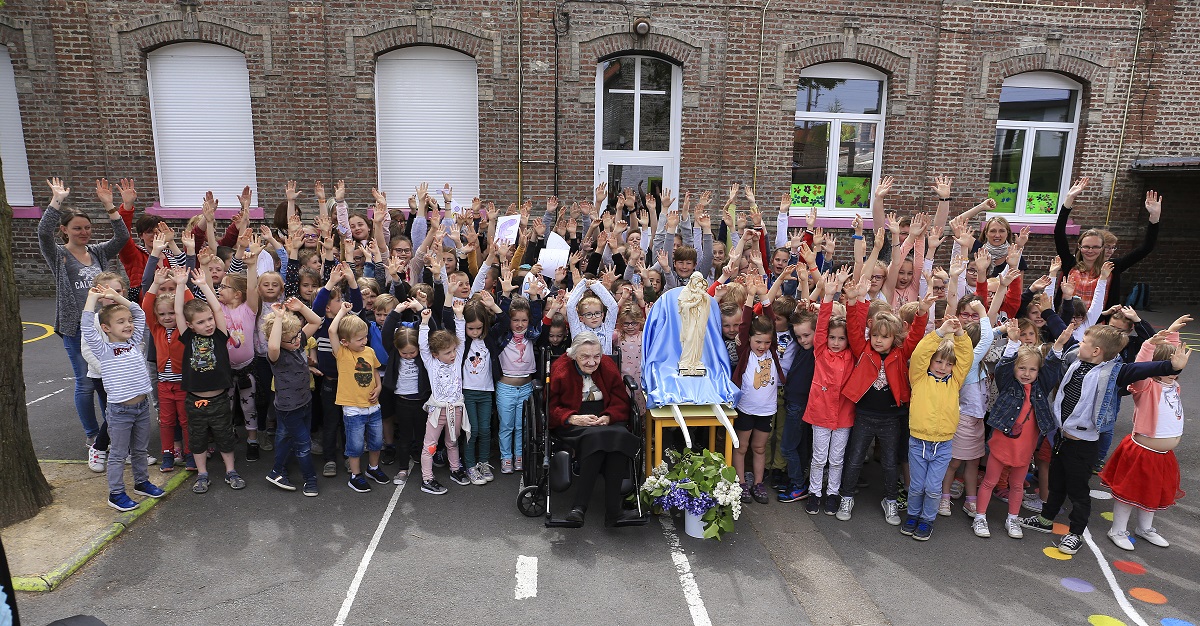 Янина Сташко с детьми в школе имени Жанны Дарк на севере Франции, в которой много лет училась и сама. Фото: Чеслав Сташко