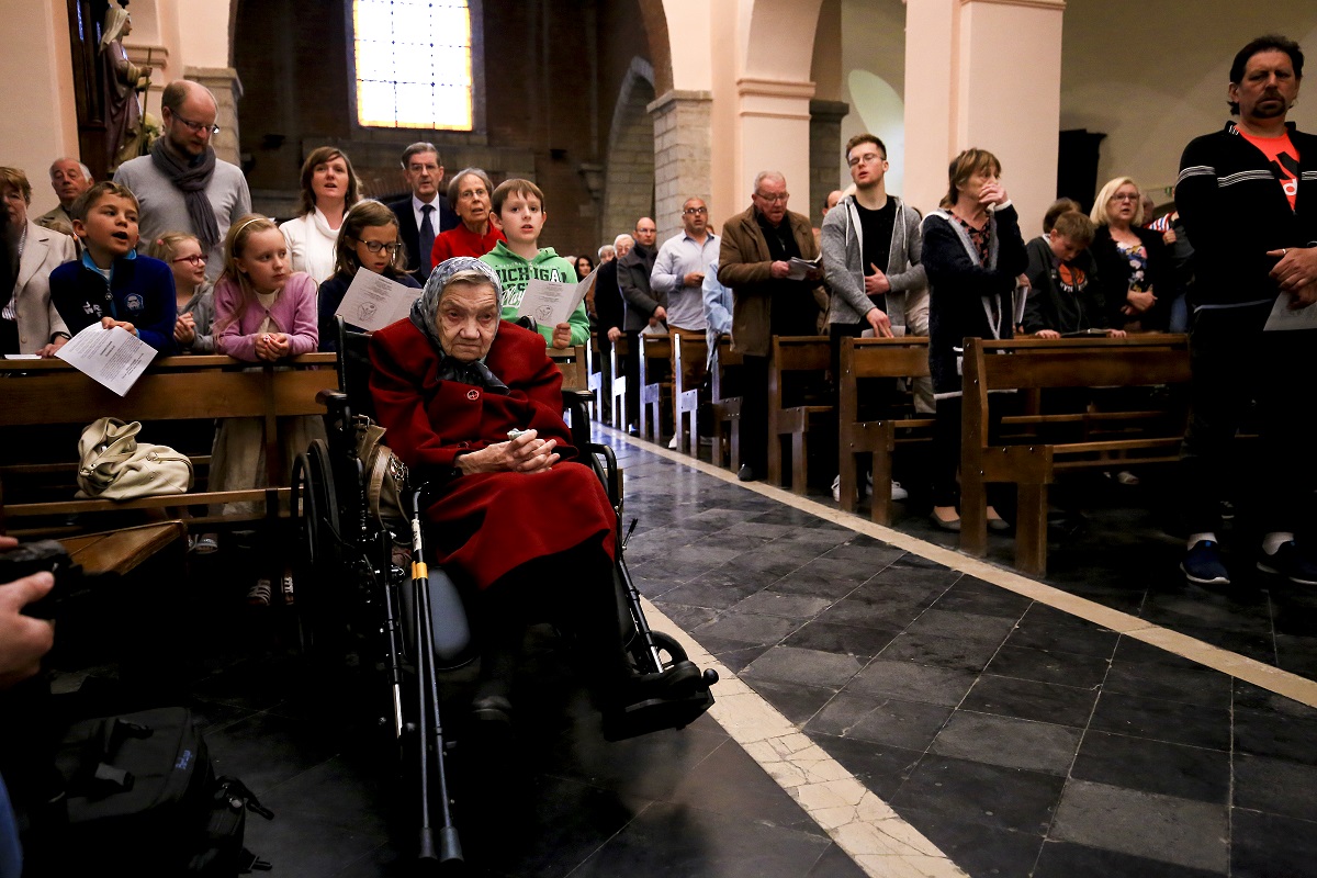 Янина Сташко в костеле города Лален на севере Франции. Здесь много лет назад ее крестили. Фото: Чеслав Сташко