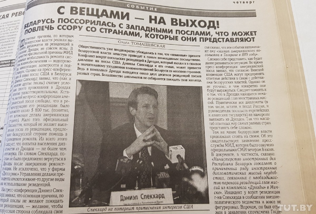 Первая информация о выселении дипломатов появилась в конце апреля. Послов просили освободить резиденции до июня. 30 апреля, 1998 год. «Белорусская деловая газета»