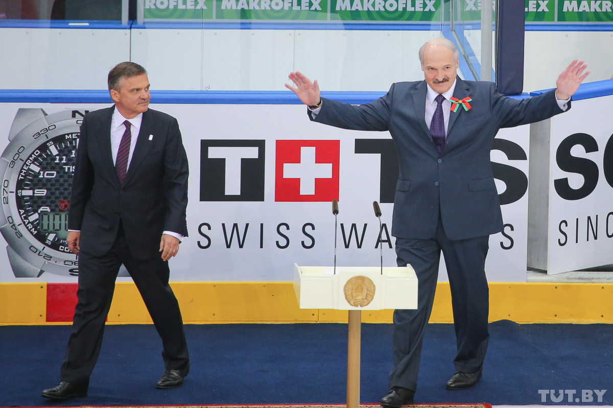 Рене Фазель и Александр Лукашенко на открытии чемпионата. Фото: Вадим Замировский, TUT.BY