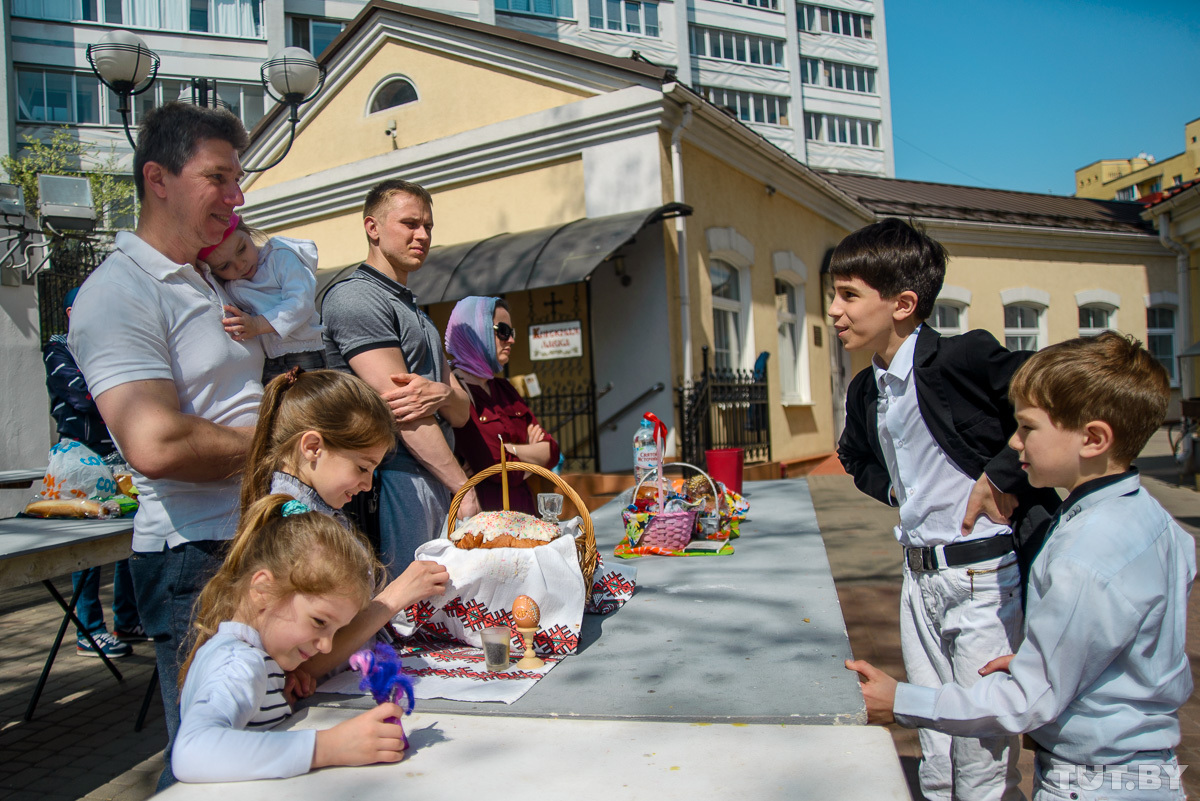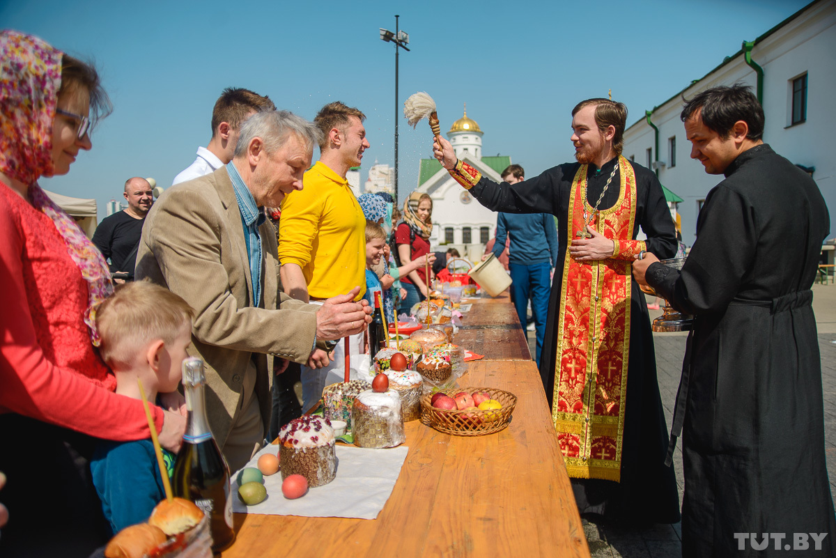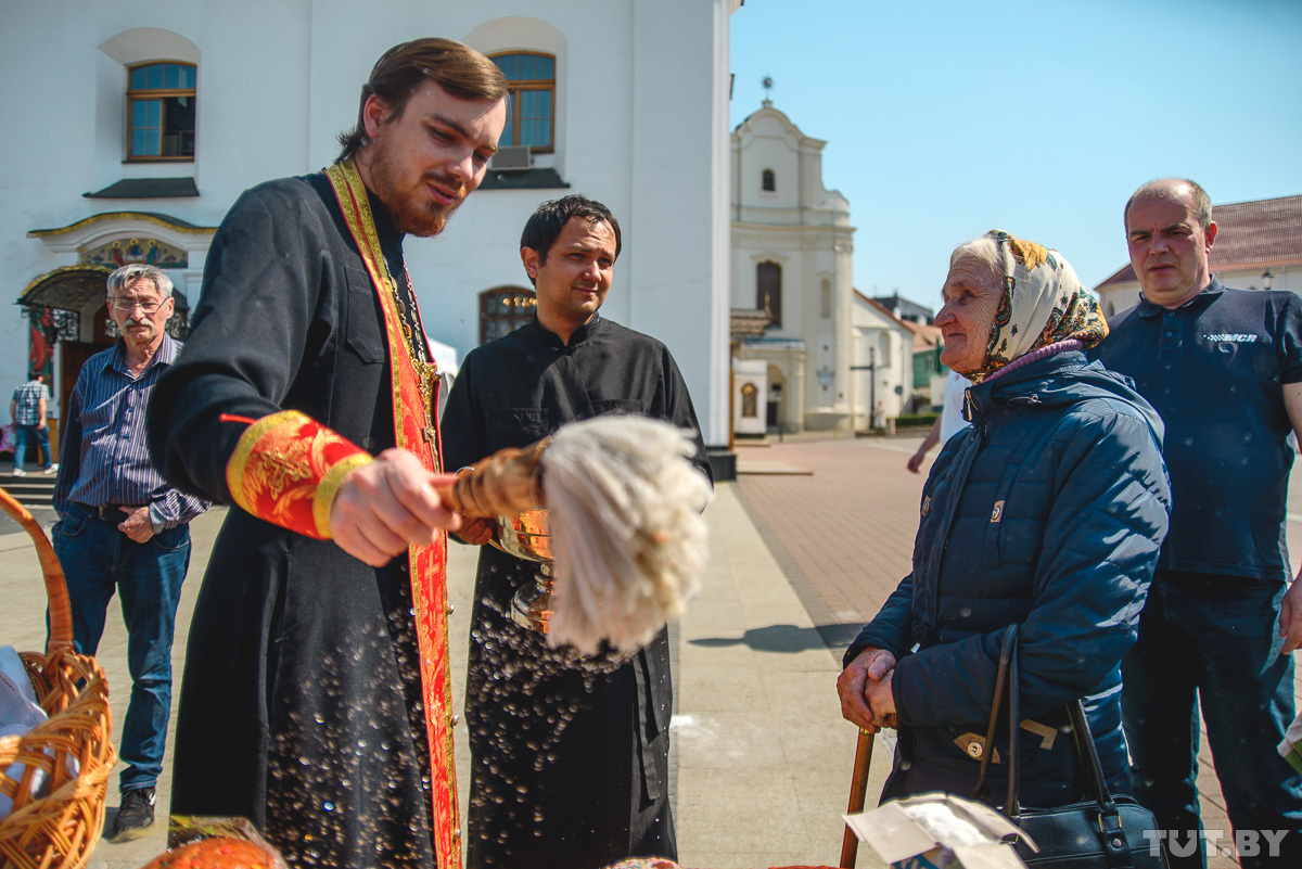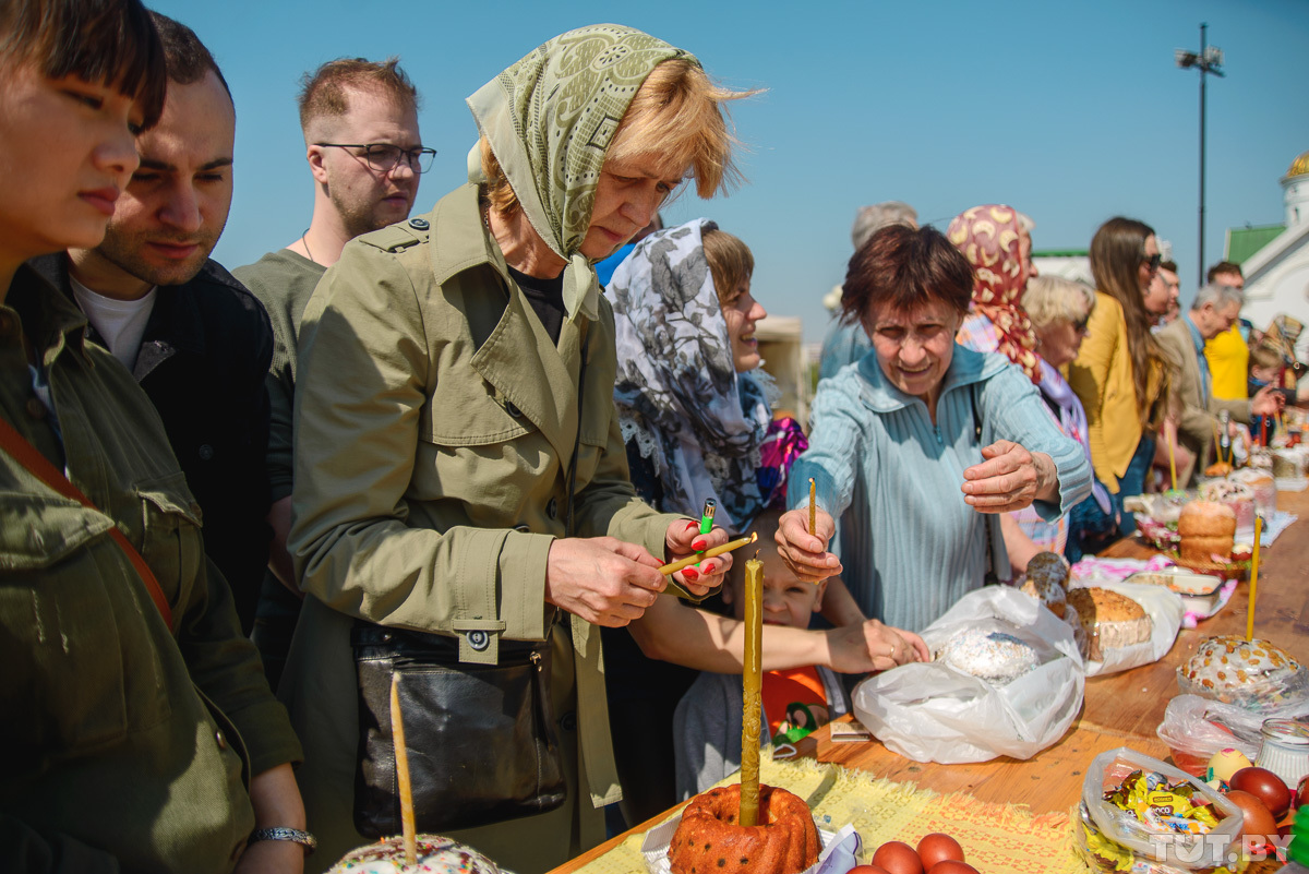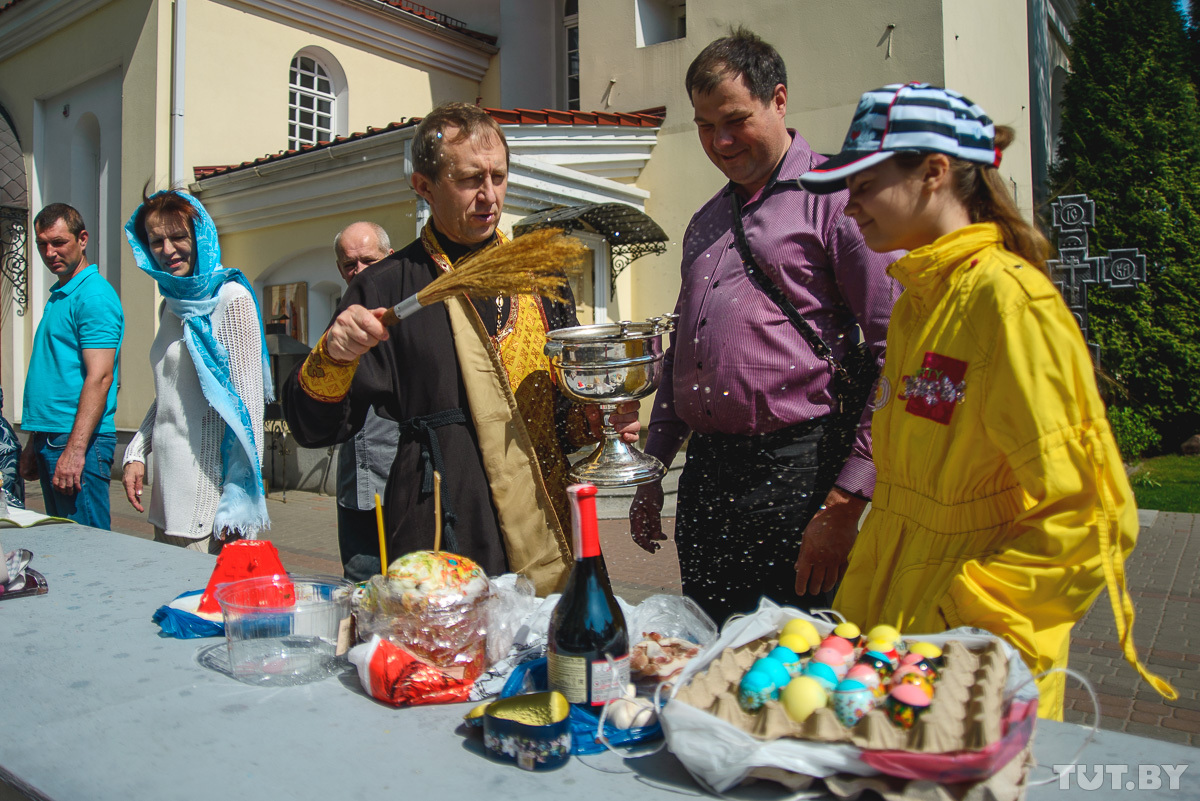 28 апреля православные христиане отмечают Светлое Христово Воскресение. Фотокорреспондент TUT.BY заглянул в минские храмы и запечатлел, как происходят праздничные богослужения и освящение пасхальной снеди.