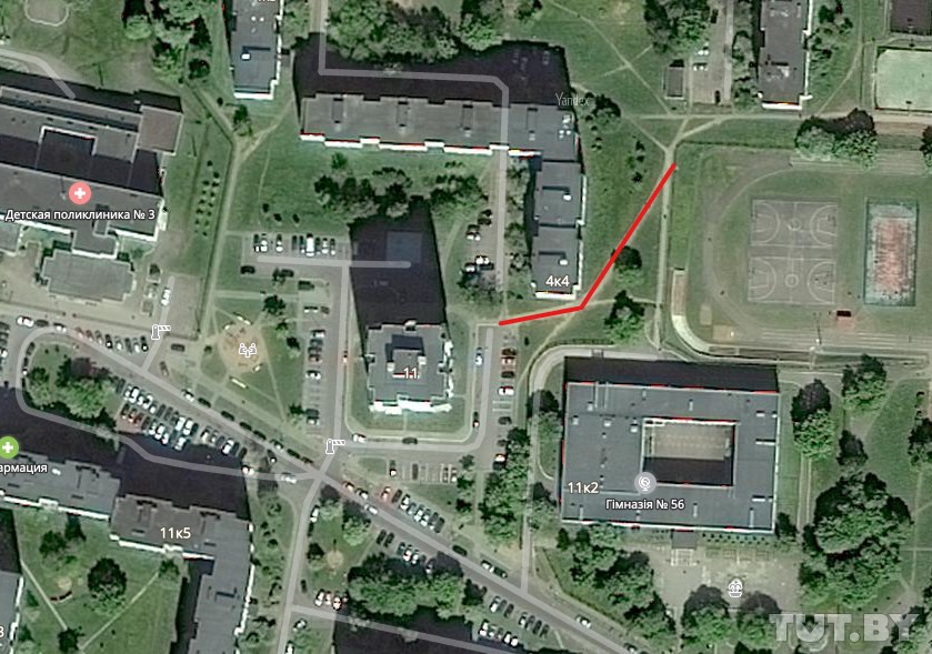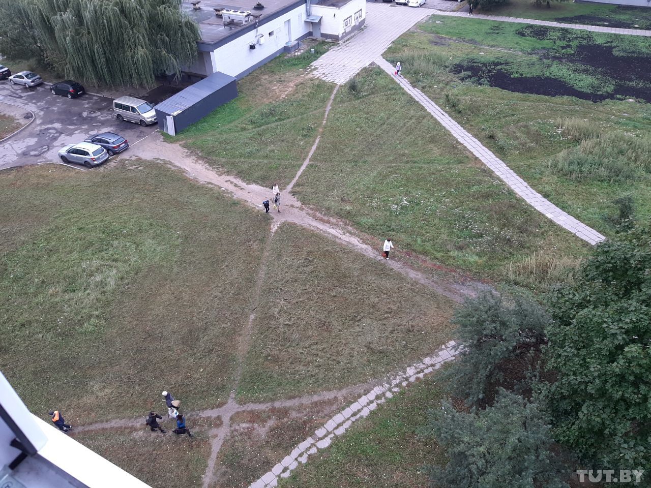 Стихийные пешеходные дороги между домами на Максима Горецкого № 31, 27, 29 и «Еврооптом» на Шаранговича хорошо видны с высоты