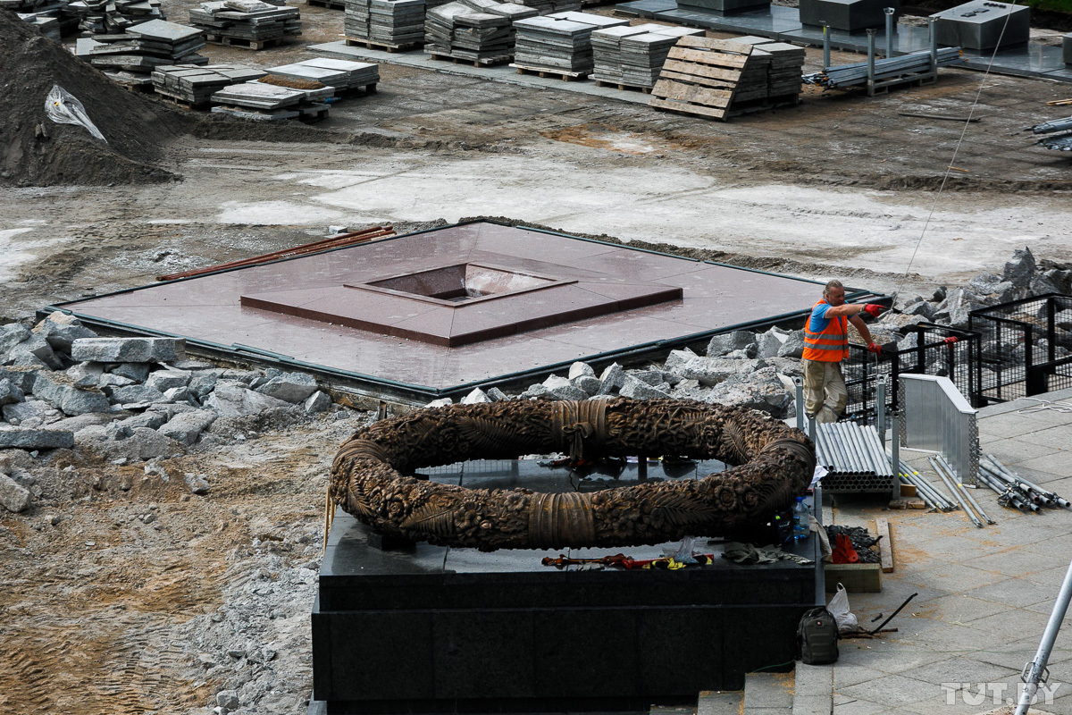 Нашли фотографию рабочих, которые оставили потомкам послание на площади Победы
