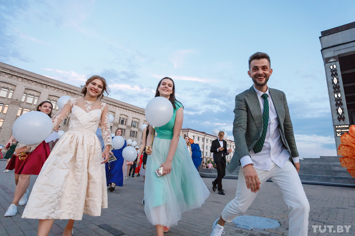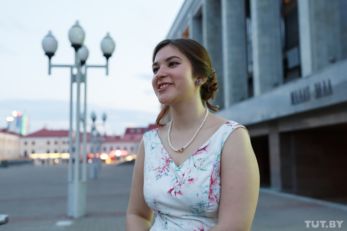 С Сашей знакомимся на Октябрьской площади. Выпускной их класс отмечает во Дворце Республики. Почему именно здесь, девушка объясняет просто: для их учебного заведения — это давняя традиция. На праздник, рассказывает, приехали на лимузинах.