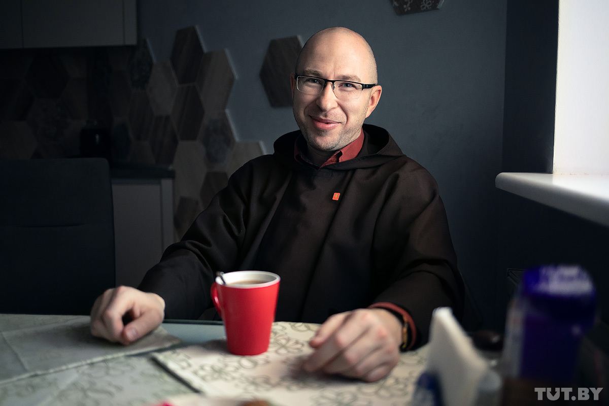 С монахом Андреем Жилевичем мы сидим на кухне офиса католического детского центра «Каритас» под Минском. Пахнет кофе, который только что залили кипятком. За окном снег тонким ровным слоем ложится на деревья и устилает дорожку, которую буквально минут двадцать назад для нас расчистил администратор. Наш собеседник — монах-капуцин. Всего в Беларуси их 23, еще несколько человек учатся в Польше.