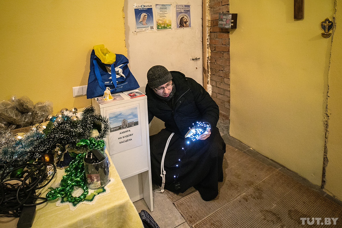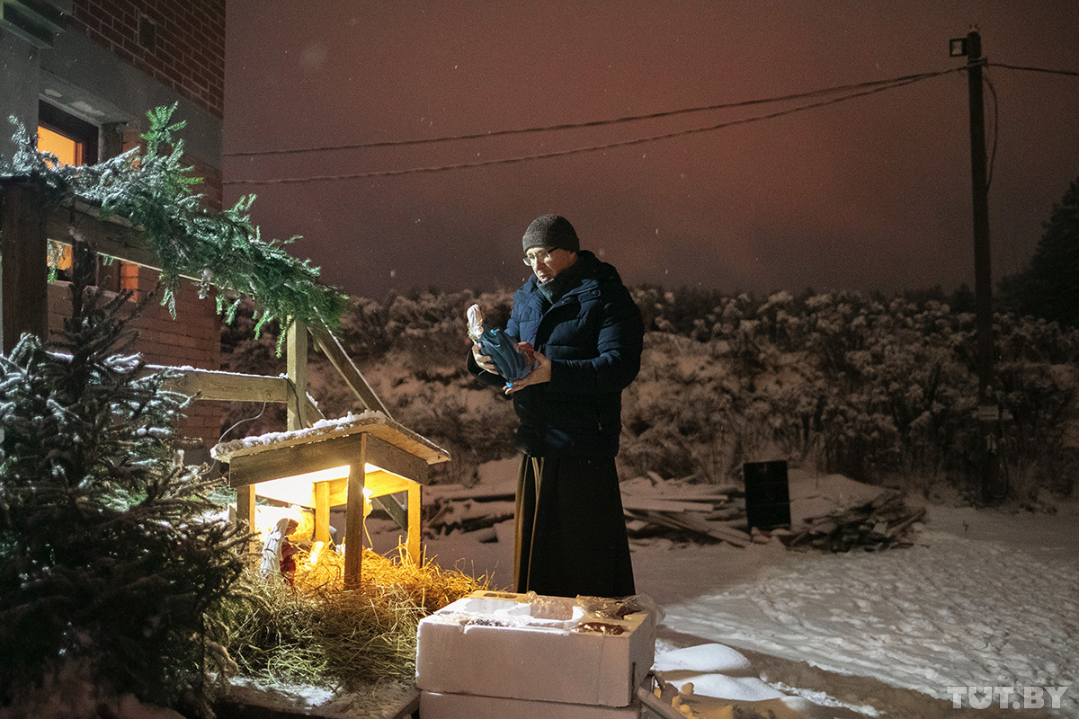 Рождественские акции в центре уже закончились, сейчас брат Андрей продолжает рассылать поздравления с праздником партнерам и друзьям центра, вместе с братьями-монахами и прихожанами украшает к празднику каплицу в деревне Копище. Здесь уже четвертый год строят костел, а в капличке пройдет святая Рождественская служба.
