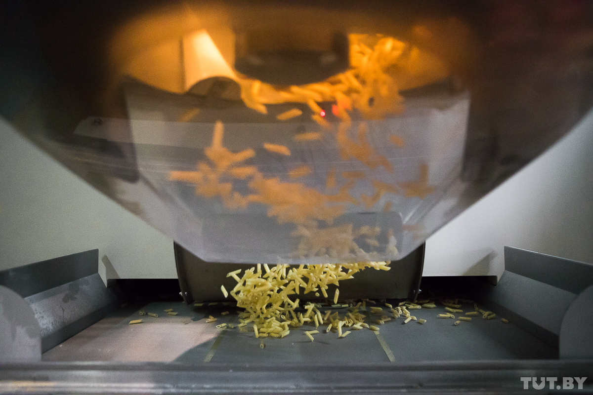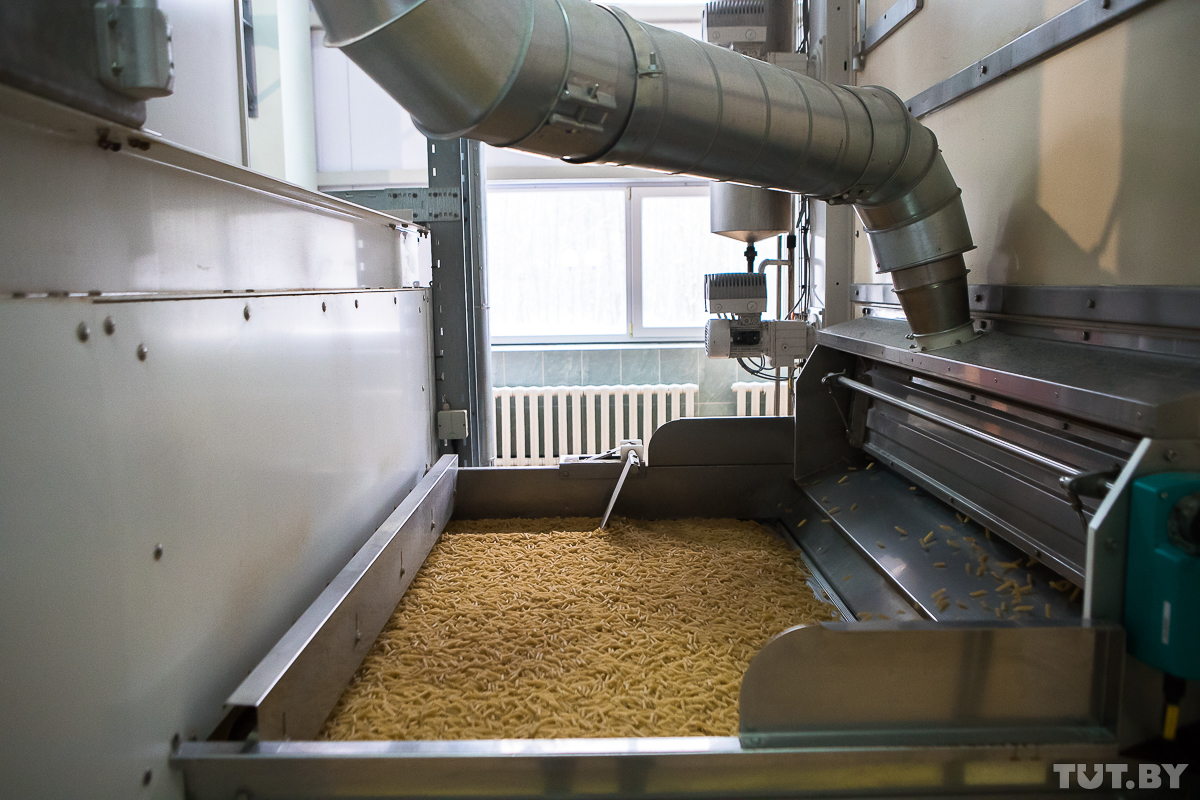 — Когда в Беларуси стали производить макаронные изделия, оказалось, что зерна для этого у нас очень мало. Хорошей пшенице нужно много солнца и сухой климат, — объясняет Екатерина. — Сейчас в нашей стране пытаются разработать такие сорта твердой пшеницы, которые могли бы расти в Беларуси, но до крупного производства еще не дошли. Поэтому пока приходится закупать сырье в России — чаще всего это Оренбургская область и Алтай.